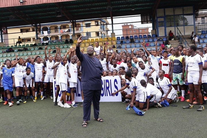 1st Vice President of the NFF, Seyi Akinwunmi taking a selfies with the girls.