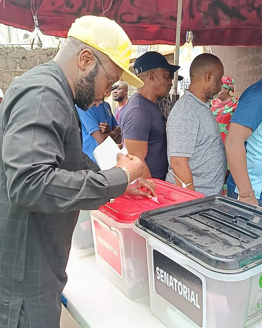 “Of course, I have just voted for my dear Father, Asiwaju Bola Ahmed Tinubu for the Presidential. I voted for our dear Sisi West, Dr. Adebule for Senate and Hon. Abiodun Faleke for House of Reps. And all my people here have done same because we believe in their sound leadership. At the end of the exercise, we are hoping for a resounding victory for APC from top to bottom.”