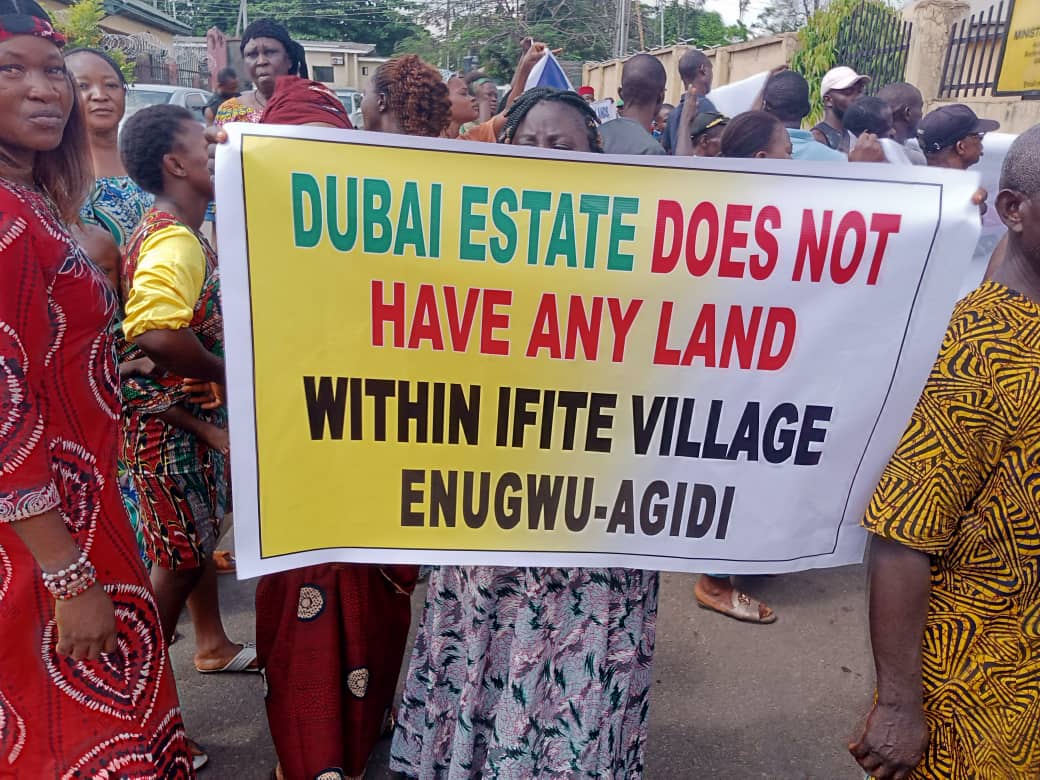 Numbering over 200, the protesters, comprising the old and the young, were seen wielding placards with different inscriptions, such as: “Soludo, Please, Give Solution to Our Land”, “Registration of Dubai Estate within Ifite Village Land Is Illegal”, “Commissioner for Lands, How Much Were You Given to Sell Our Farmlands?”, “Dubai Estate Does Not Have Any Land within Ifite Village Enugwu-Agidi”, “Dubai Estate Obey the Court Order”.