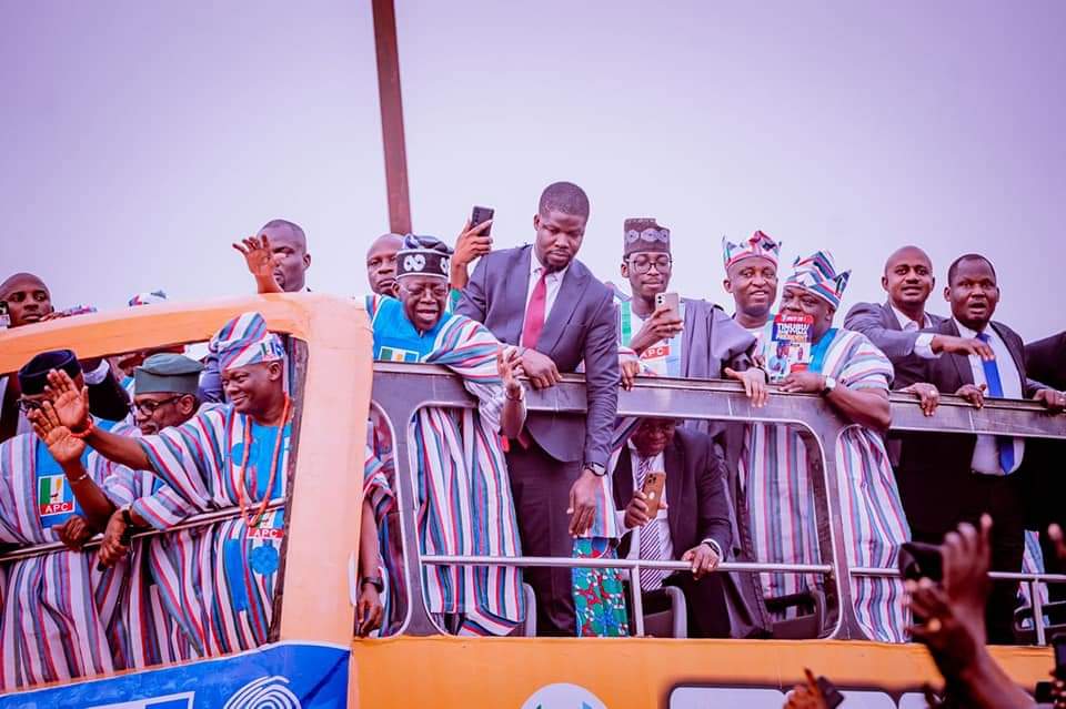 Among those who were with the APC presidential candidate at the rally were Speaker of the House of Representatives, Rt. Hon. Femi Gbajabiamila; Governor Dapo Abiodun of Ogun State, former governors Kayode Fayemi (Ekiti) and Adeboyega Oyetola (Osun), members of the National Assembly, among other chieftains of the party.