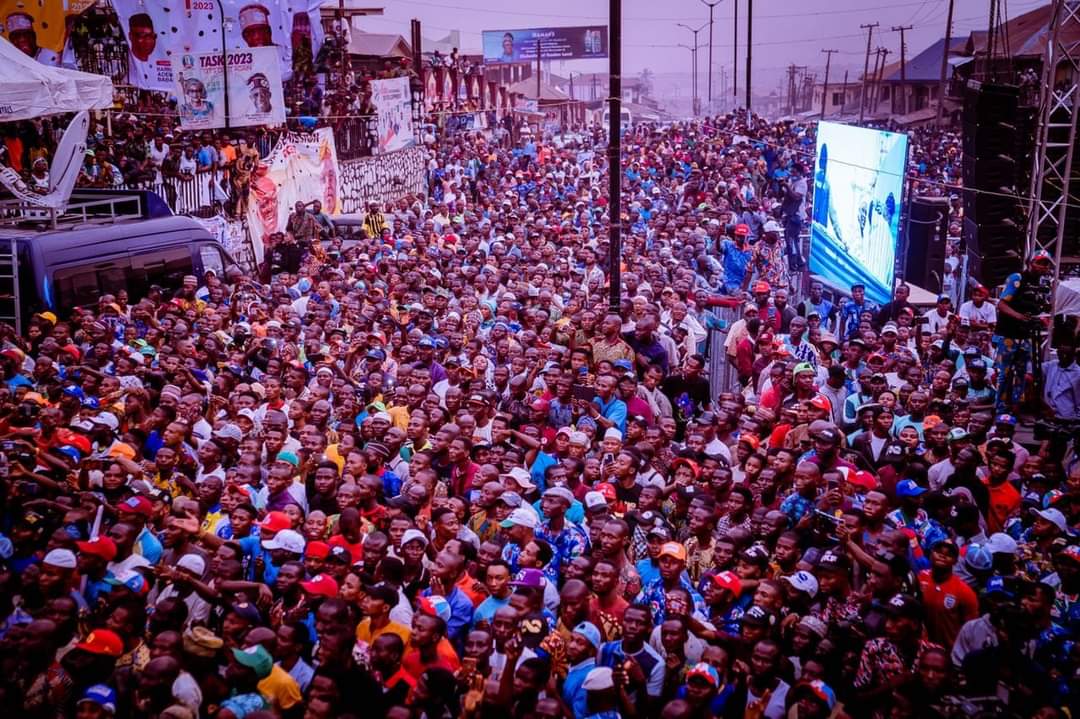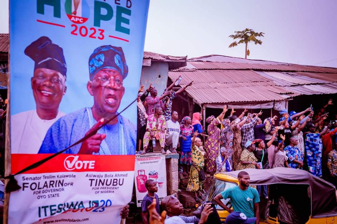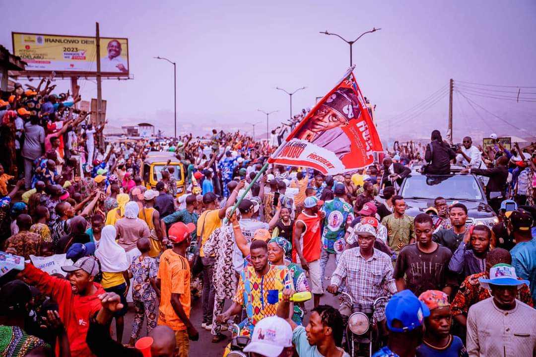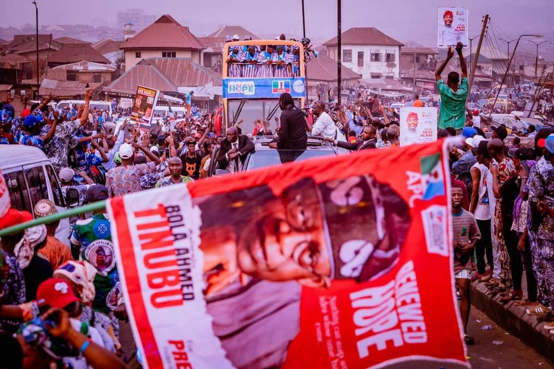 Massive crowd on Thursday welcomed the All Progressives Congress (APC) presidential candidate, Asiwaju Bola Ahmed Tinubu, on a campaign tour to Ibadan, the Oyo State capital.