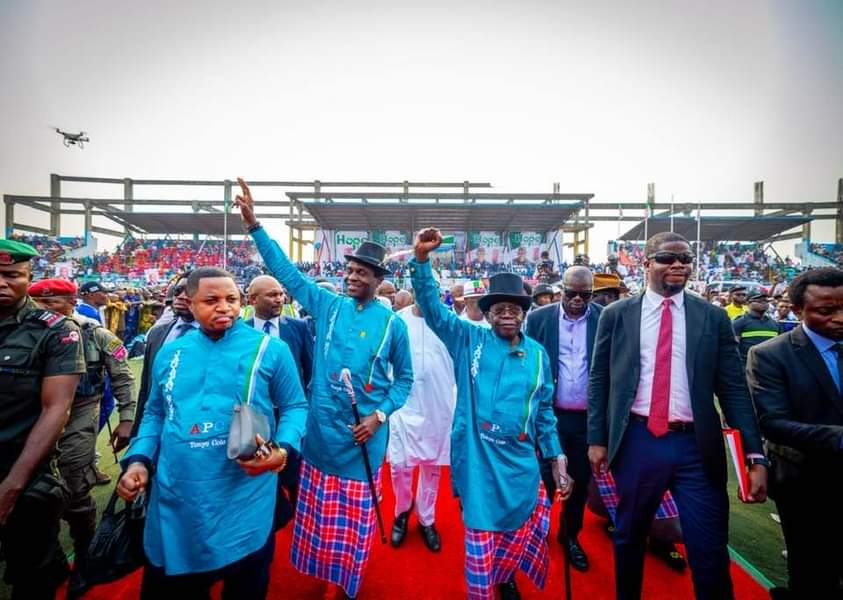 The rally was attended among others by APC Vice Presidential Candidate Senator Kashim Shettima, Governors Atiku Bagudu (Kebbi), Dave Umahi (Ebonyi) and Babajide Sanwo-olu (Lagos) as well as former Ekiti State governor Dr. Kayode Fayemi and his former Edo State counterpart, Comrade Adams Oshiomhole.