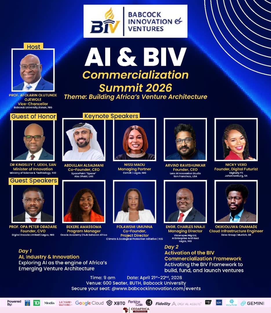 Babcock University is set to convene a high-level gathering of global technology leaders, innovators, and policymakers at the AI & Babcock Innovation Venture (BIV) Commercialization Summit 2026.