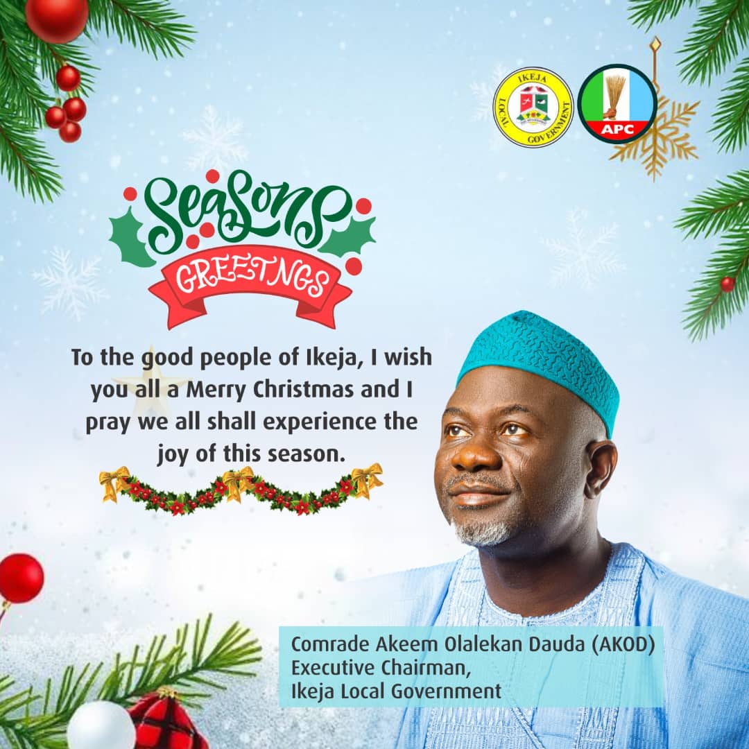 Comrade Dauda said, “Dear Good People of Ikeja, I bring you warm Christmas greetings filled with love, peace, and renewed hope. As we celebrate the birth of our Lord Jesus Christ, I give all glory to God for His guidance, protection, and grace over Ikeja and over us as a people”.
