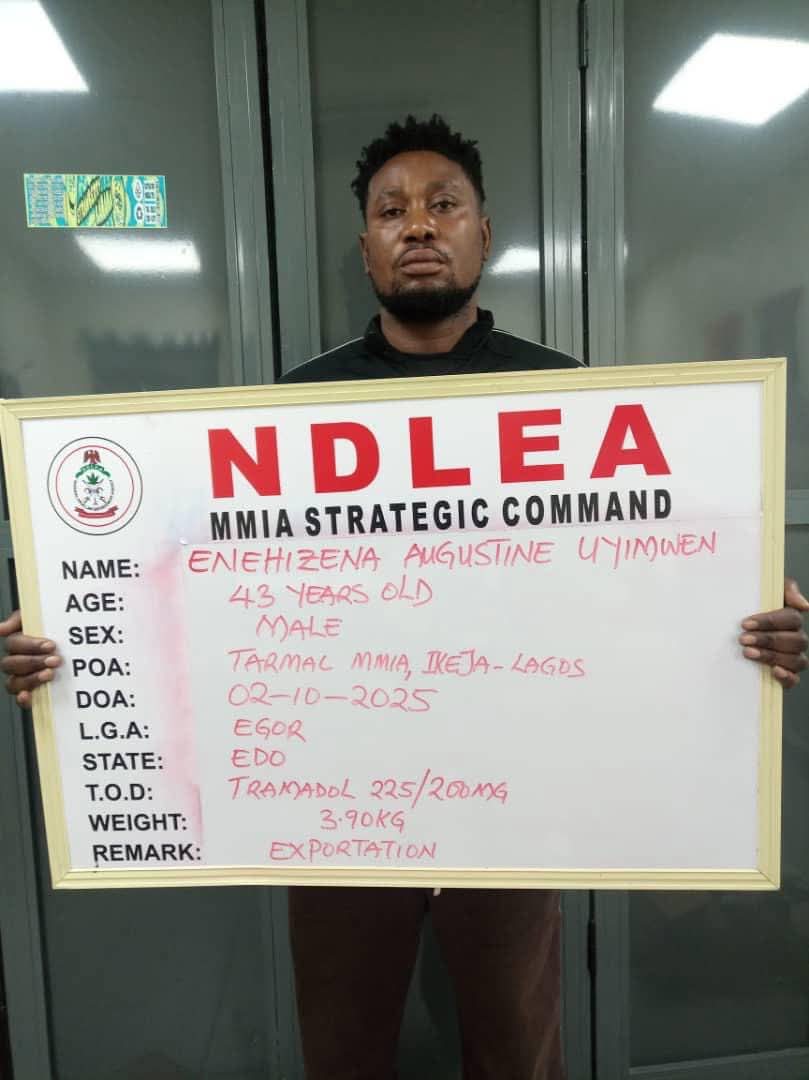 Same day, an Italy-based businessman Enehizena Augustine Uyimwen was arrested by operatives while attempting to export 3,700 pills of tramadol 225mg and 2,600 tabs of tapentadol 200mg hidden in food items to the European country. He claimed he was trafficking the opioids for someone else for a fee of Nine Hundred and Forty-Five Euros (€945).