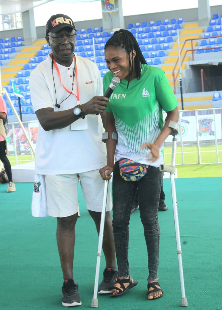 Director General, Lagos State Sports Commission, Toyin Gafaar (2nd right) and Coordinator of Lagos Women Run, Ms. Tayo Popoola (left) with some of the officials at the Teslim... Continue