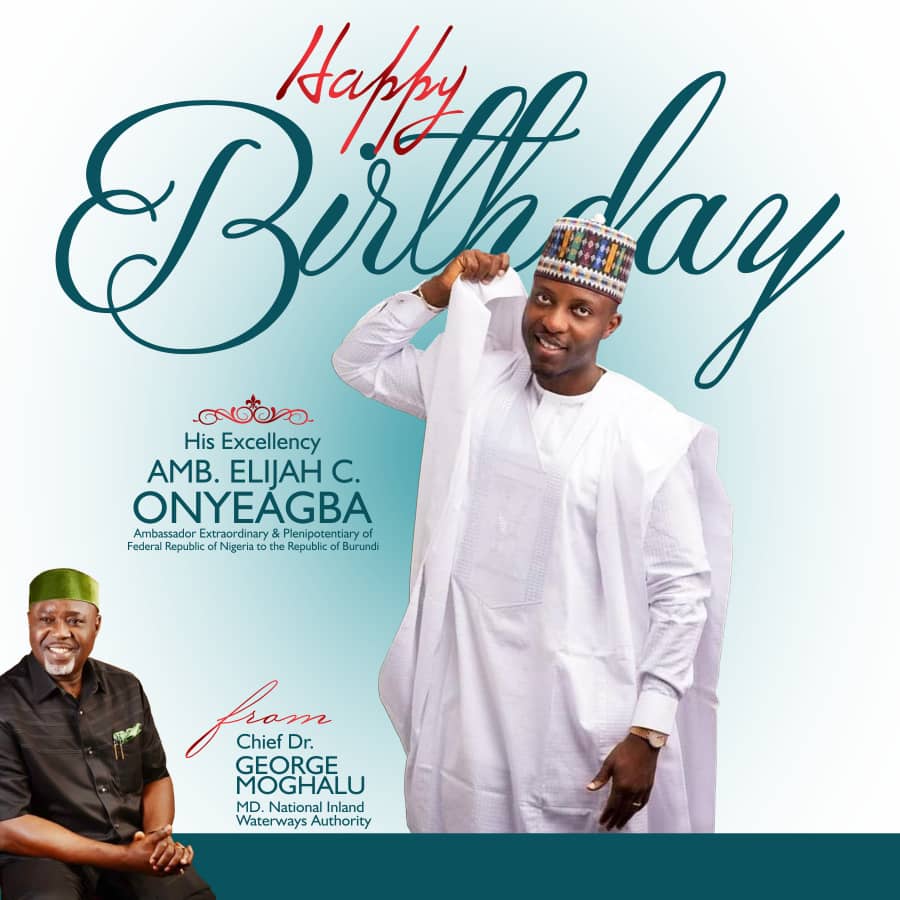 The Managing Director of National Inland Waterways Authority, NIWA, Chief Dr George Moghalu, has felicitated with His Excellency Ambassador Elijah Onyeagba, PhD, Nigeria’s Ambassador to the Republic of Burundi, on the occasion of his birthday.