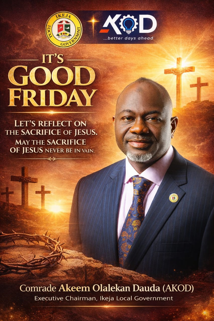 The Executive Chairman of Ikeja Local Government, Comrade Akeem Olalekan Dauda (AKOD), has extended warm Good Friday greetings to all Christian faithful and residents of Ikeja, urging them to reflect deeply on the profound sacrifice of Jesus Christ.