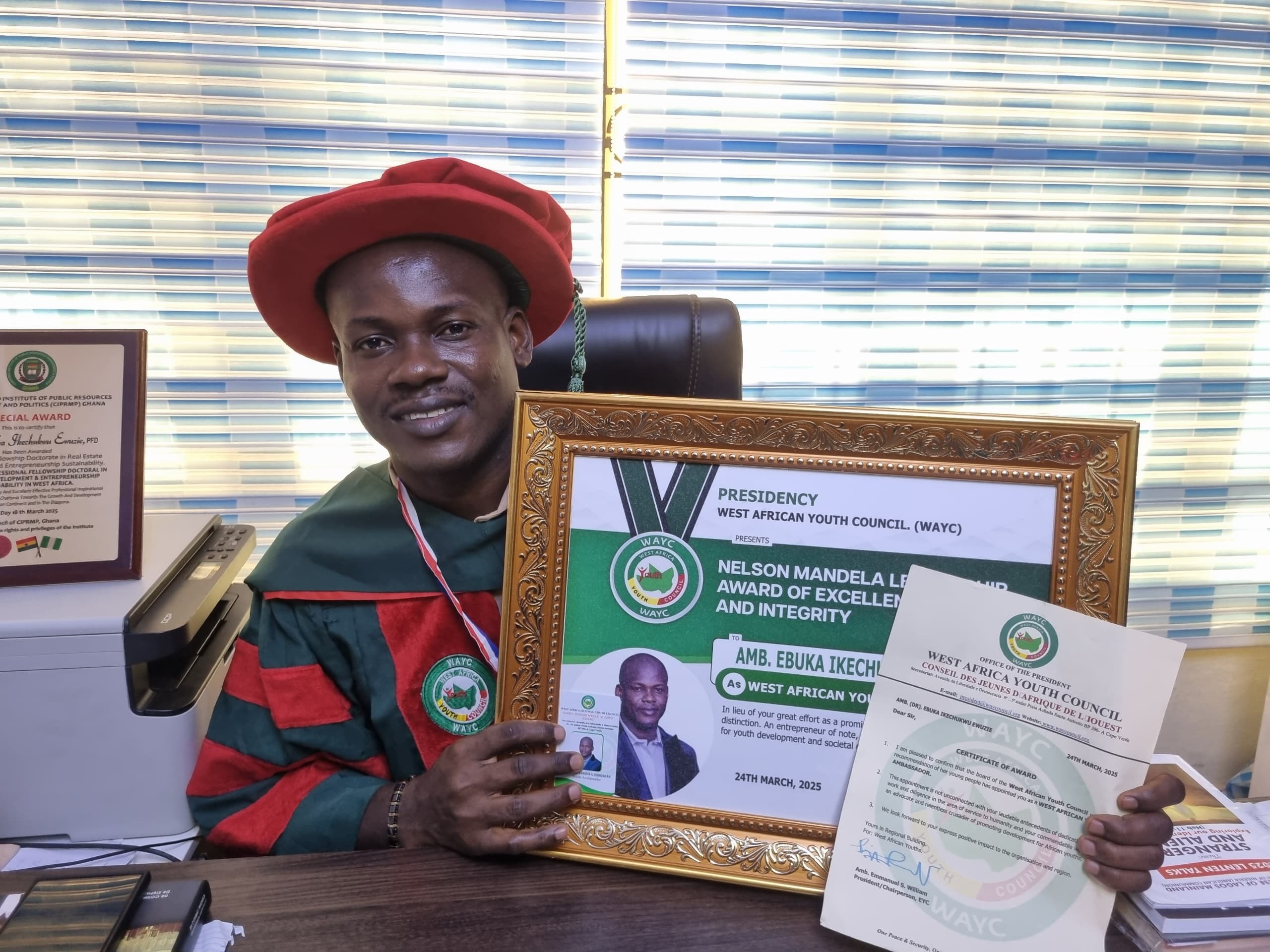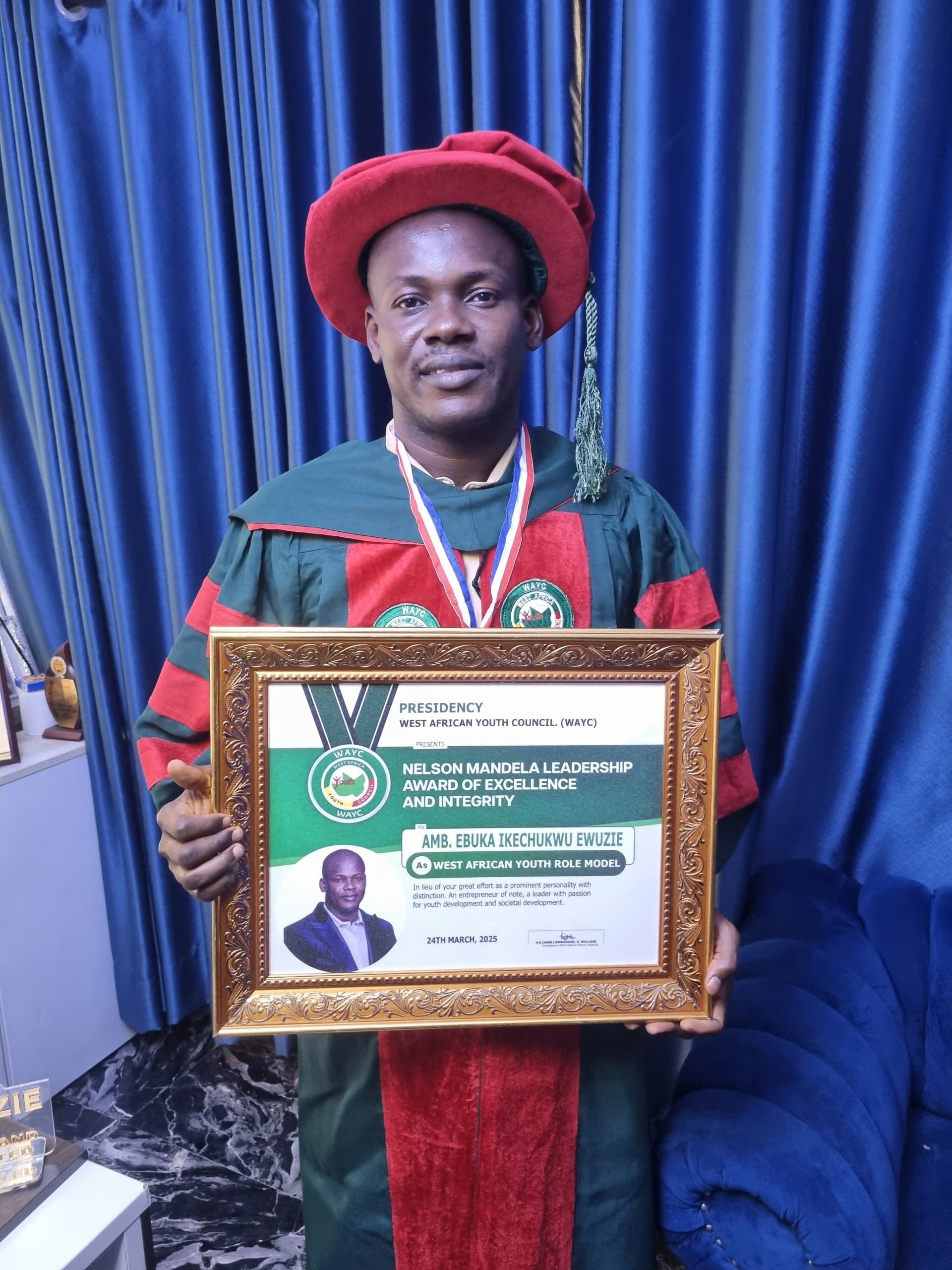 In a moment of well-deserved recognition, Dr. Ebuka I. Ewuzie, the visionary CEO of Bukasin Unique Services, was on 24th March, 2025, honoured with the Nelson Mandela Leadership Award of Excellence and Integrity and officially appointed as a Youth Ambassador by the ECOWAS Youth Council (EYC).