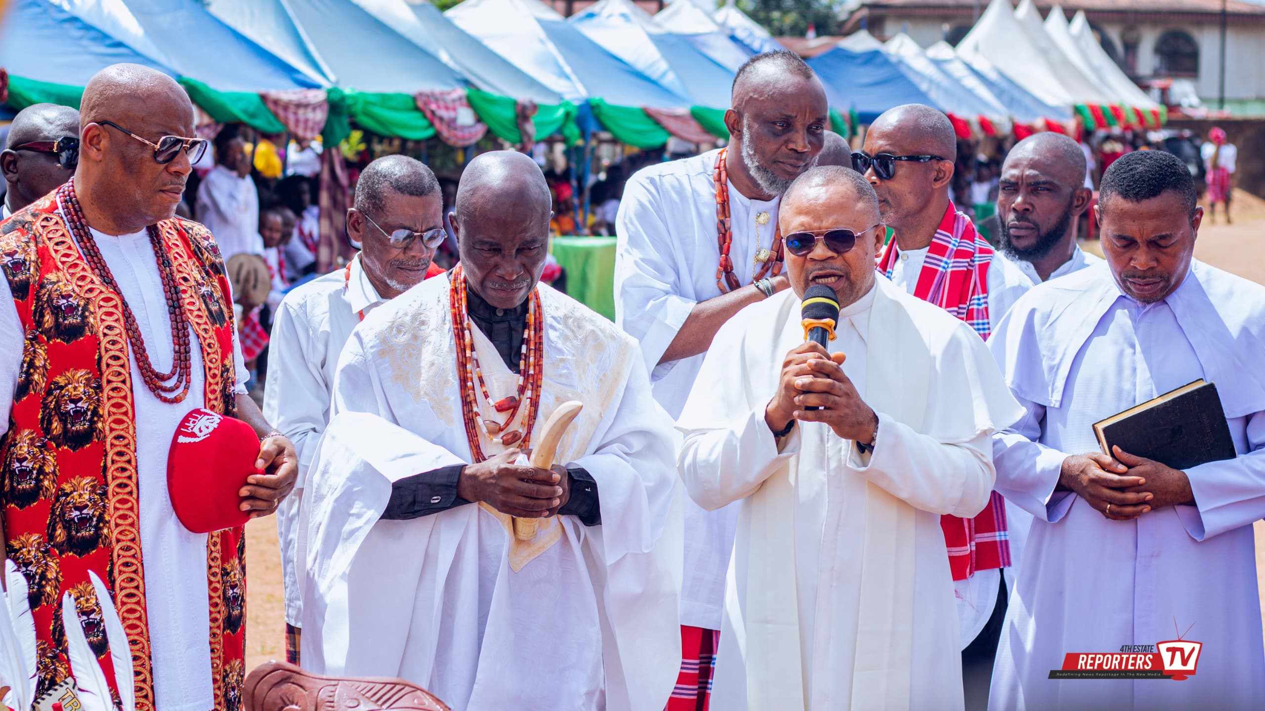 The Chairman of the Planning Committee, Chief Apostle Kingsley Ndee Oguine, ushered in the Traditional Ruler and Traditional Prime Minister, who officiated the ceremonial cutting of the yam, offering heartfelt prayers for peace, security, progress, and development in Anara.