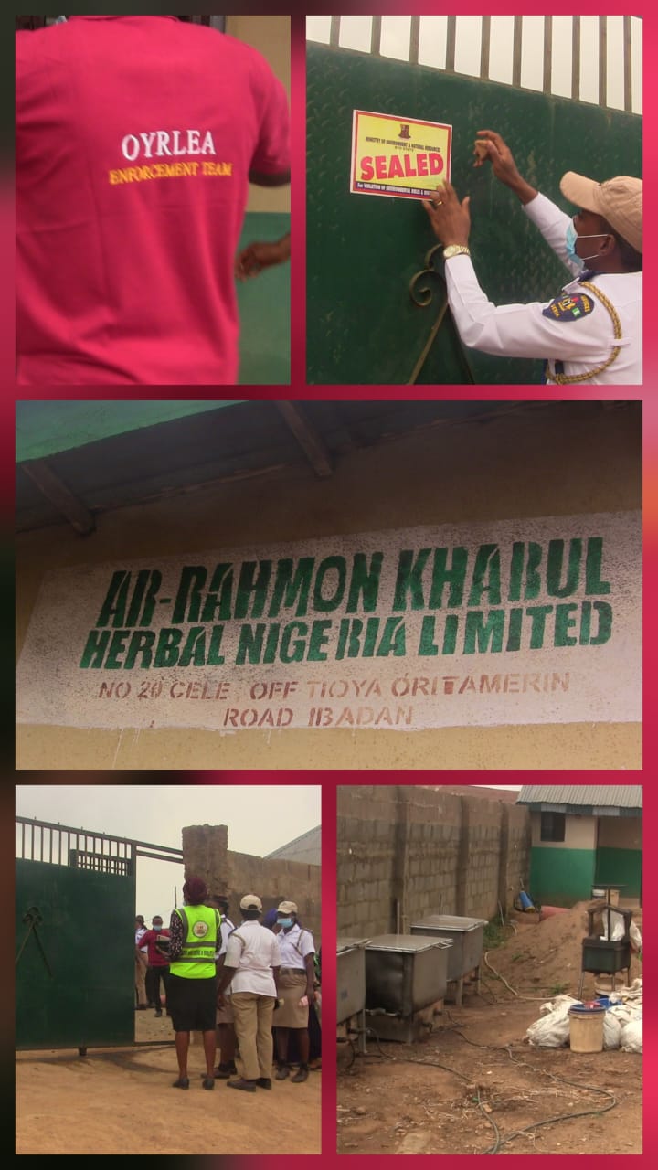The Oyo State Government has sealed off Ar-Rahmon Khabul Herbal Nigeria Limited, located at 20 Cele, Off Tioya Oritamerin Road, Ibadan, over confirmed environmental violations and public health concerns.