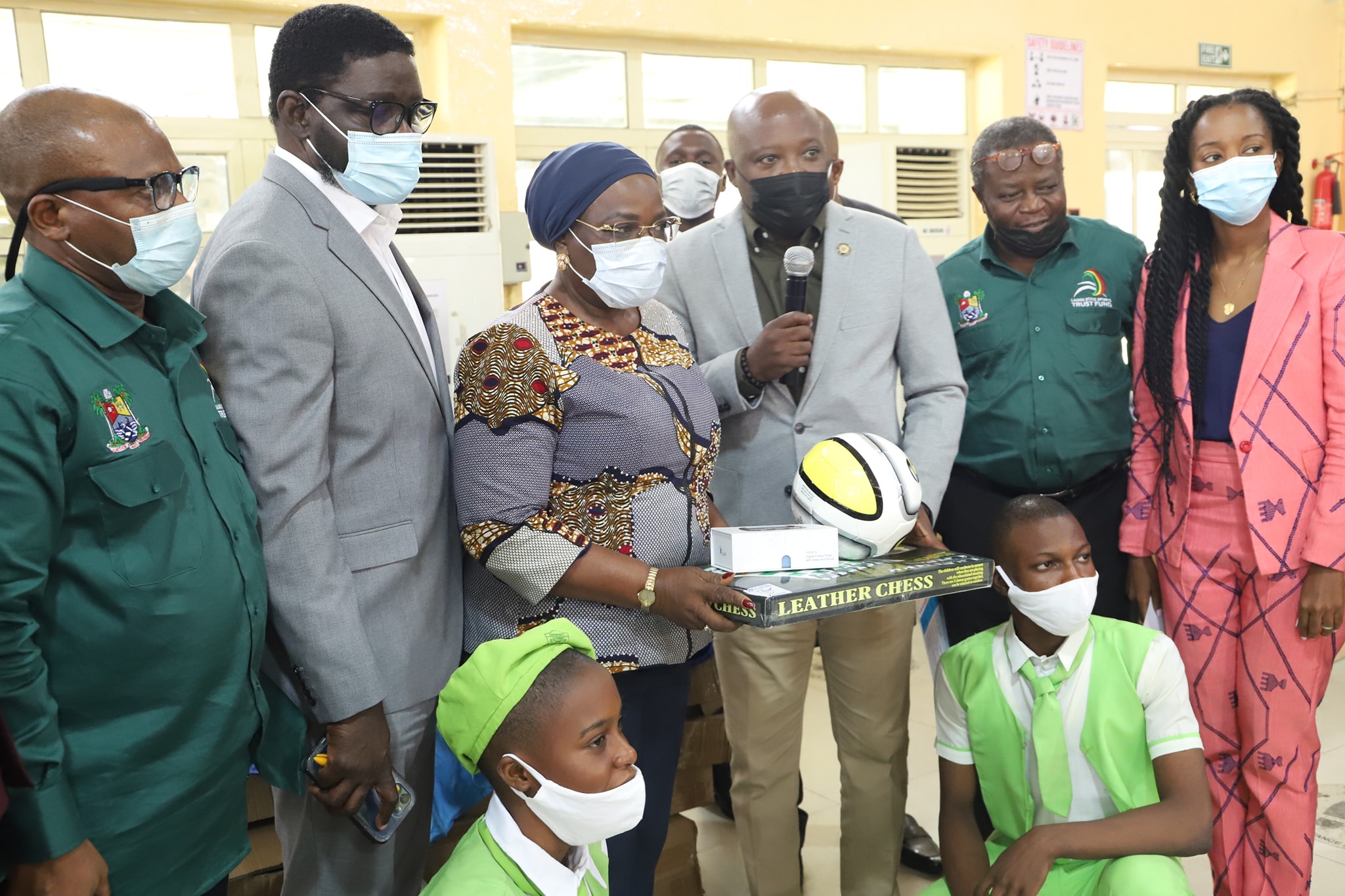 Presentation and handing over of the various sports equipment to the Tutor-General / Permanent Secretaries of the six Educational Districts were done by the Deputy Chief of Staff, Chairman, Lagos State Sports Trust Fund, Olufemi Pedro, Chairman, Lagos State Sports Commission, Sola Aiyepeku, Director General Lagos State Sports Commission, Oluwatoyin Gafaar, Wahid Enitan Oshodi, Board Member, Lagos State Sports Trust Fund amongst others.