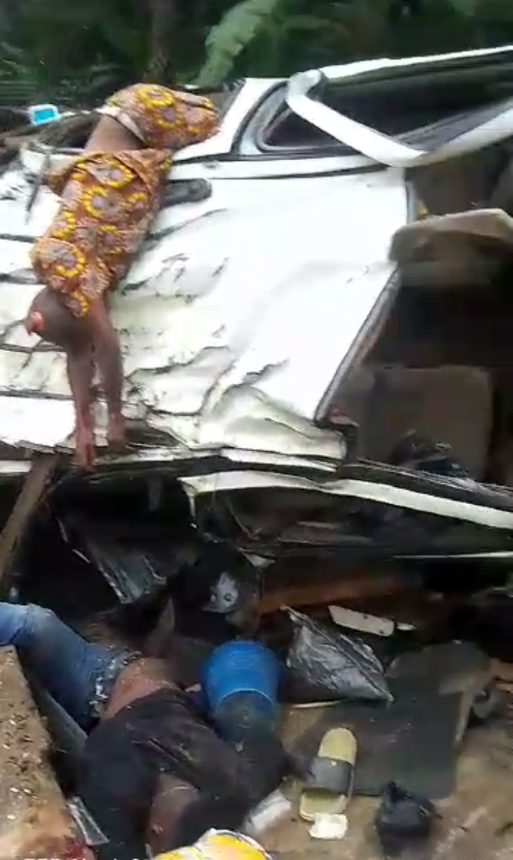 Videos from the scene of the crash, currently trending on the social media, show some corpses lying in the pool of their blood, while some others were said to be still trapped inside and under the crashed vehicle.