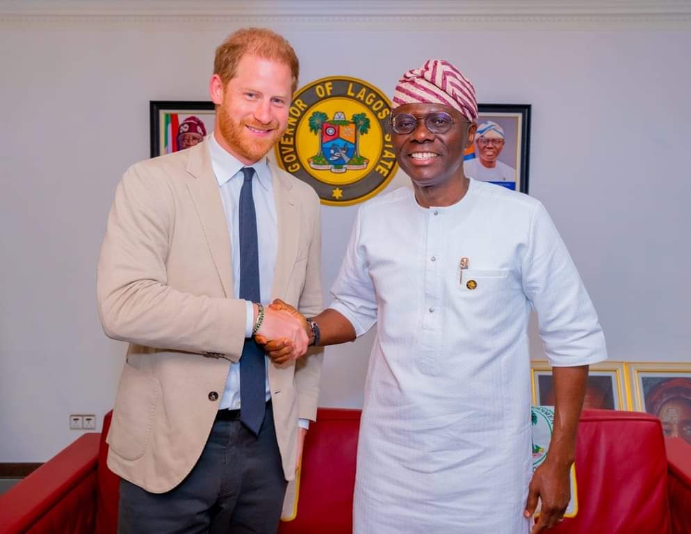 The Lagos State Governor, Mr. Babajide Sanwo-Olu, received the Duke and Duchess of Sussex, Prince Harry and Meghan Markle, on Sunday.