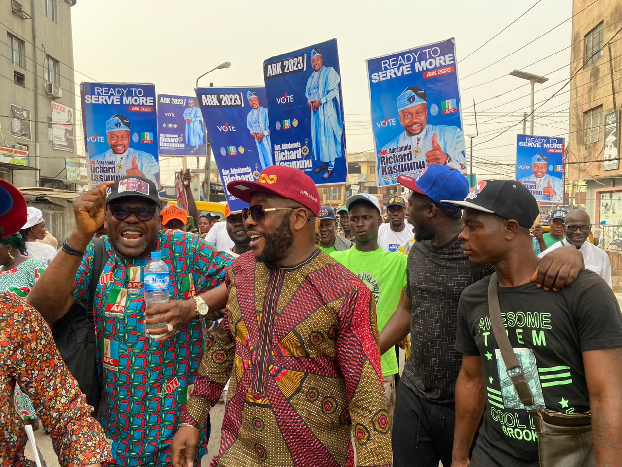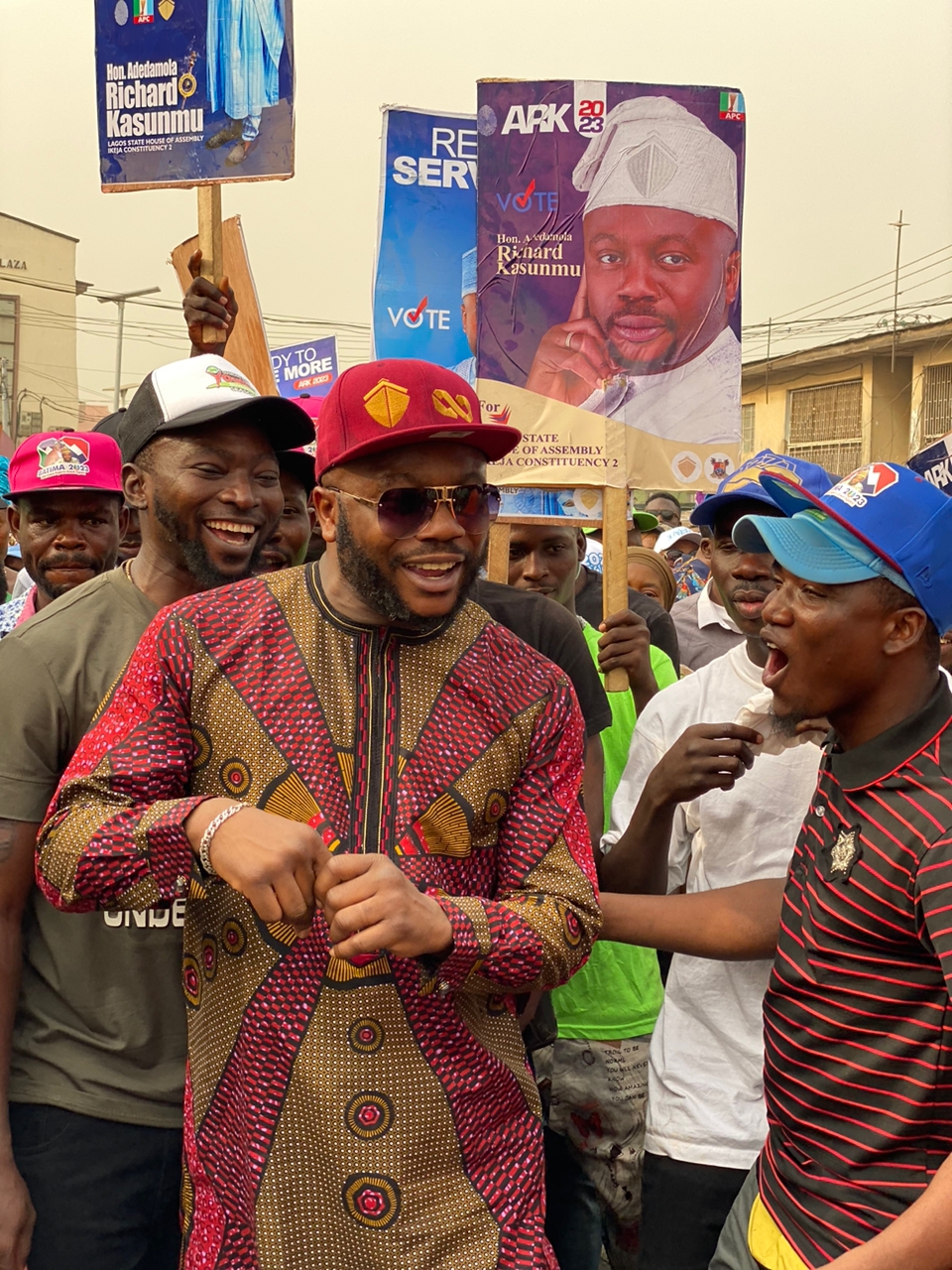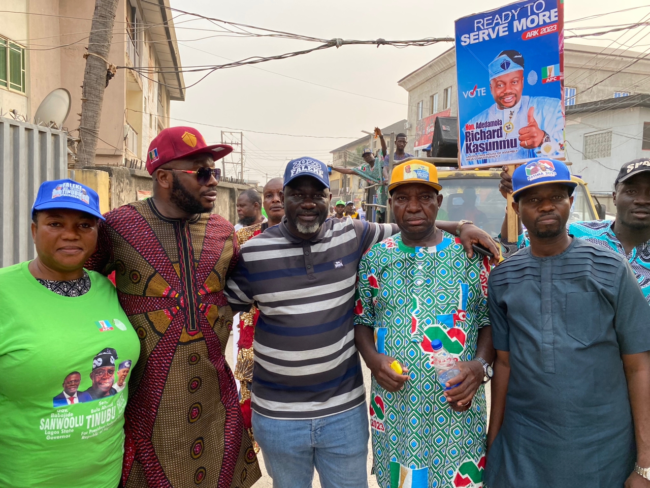 Speaking during the street-to-street grassroots campaign on Friday afternoon, the ranking State Assembly Lawmaker, Hon Kasunmu, who stood-in for other candidates at the rally, assured all that Asiwaju Bola Ahmed Tinubu, Gov. Babajide Sanwo-Olu, Dr. Idiat Adebule, Hon. James Abiodun Faleke and other APC candidates including his humble self, will deliver excellent dividends of democracy if elected/re-elected at the polls come February and March.