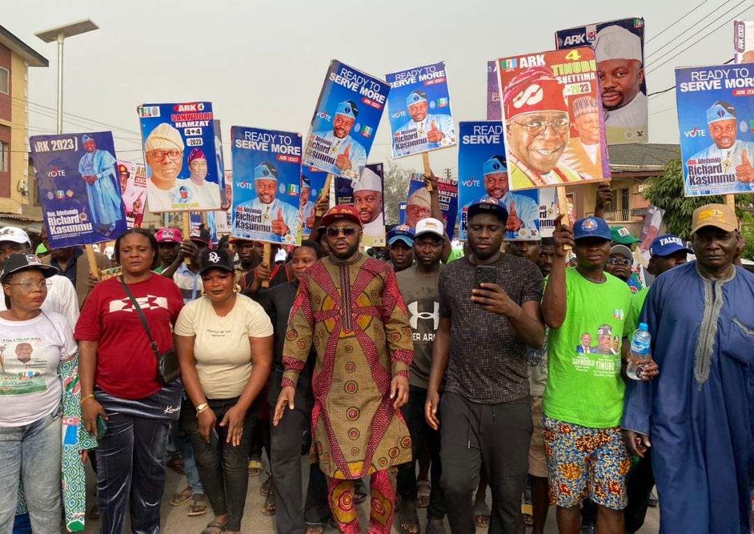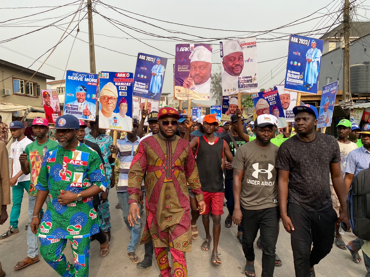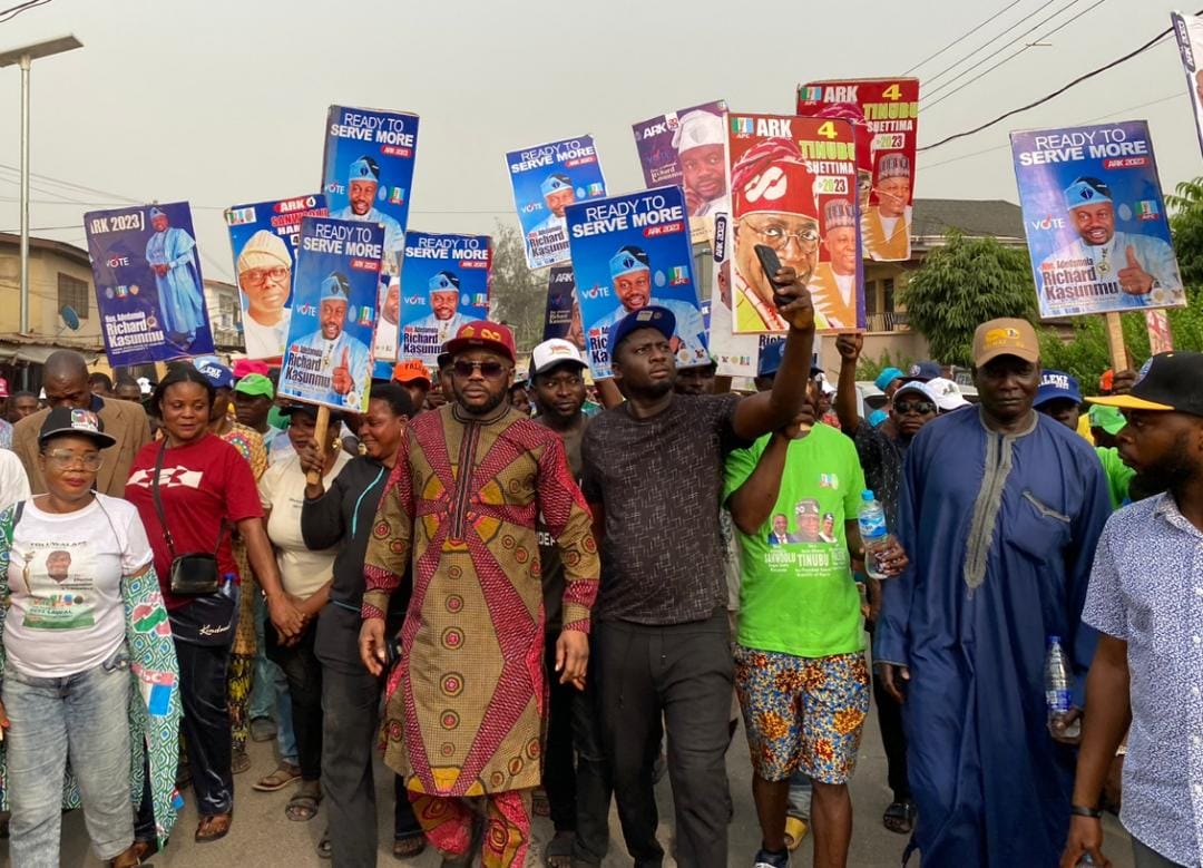 Speaking during the street-to-street grassroots campaign on Friday afternoon, the ranking State Assembly Lawmaker, Hon Kasunmu, who stood-in for other candidates at the rally, assured all that Asiwaju Bola Ahmed Tinubu, Gov. Babajide Sanwo-Olu, Dr. Idiat Adebule, Hon. James Abiodun Faleke and other APC candidates including his humble self, will deliver excellent dividends of democracy if elected/re-elected at the polls come February and March.