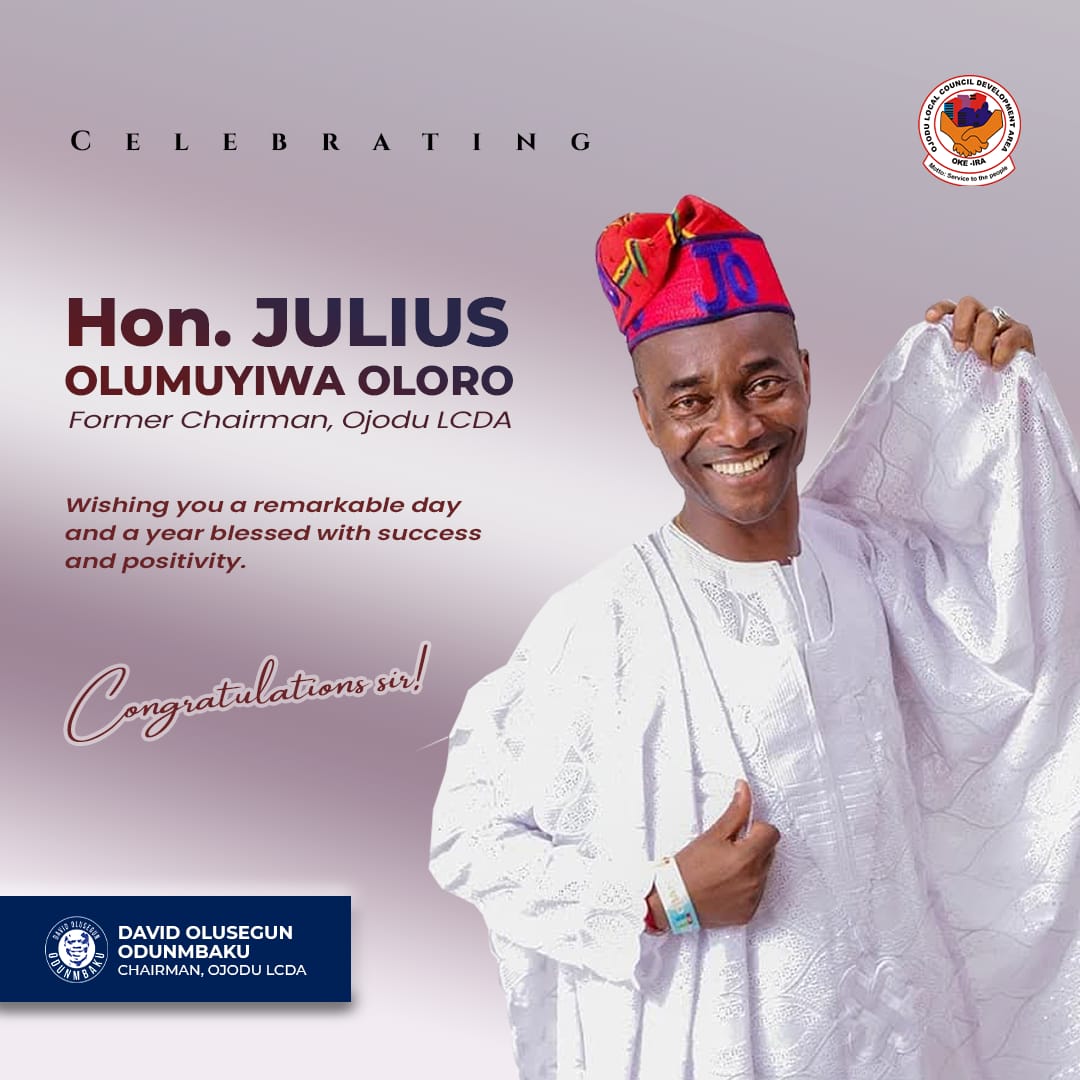 The Executive Chairman of Ojodu LCDA, Lagos State, Hon Segun Odunmbaku, has felicitated with the Council’s former Chairman, Engr. Julius Olumuyiwa Oloro, on the occasion of his birthday anniversary.