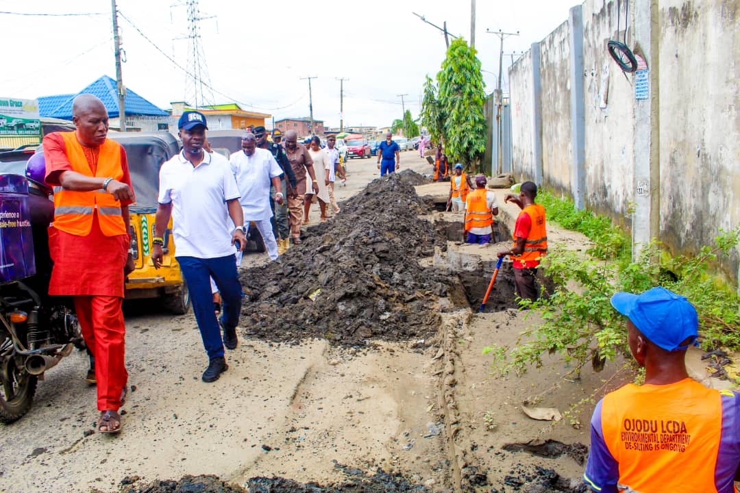The Executive Chairman Of Ojodu LCDA, Lagos State, Hon Segun Odunmbaku, today visited and inspected the ongoing desilting exercise at Akilo Road by the Council’s Department Of Environmental Services.