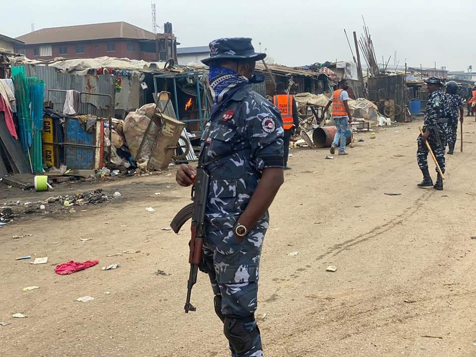 How Lagos Task Force Cleared Illegal Structures Along Rail Track At Fagba