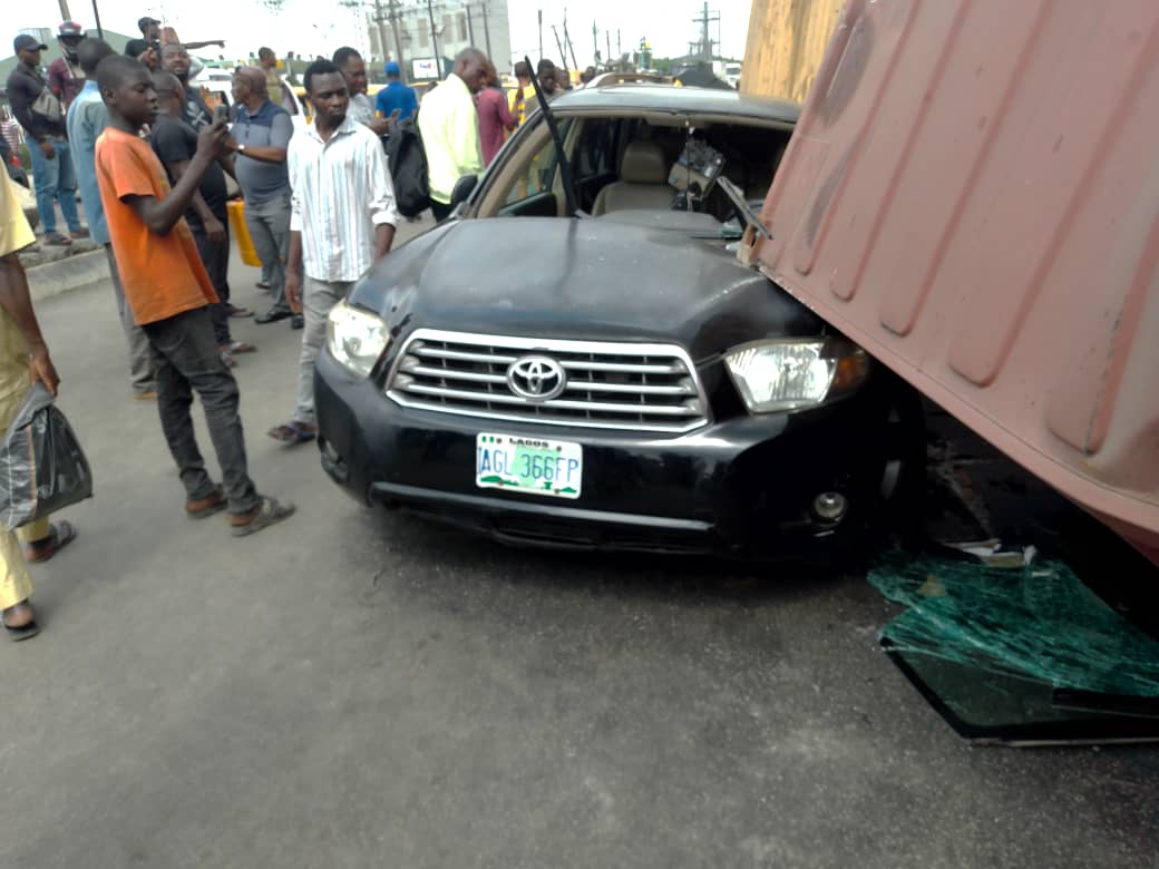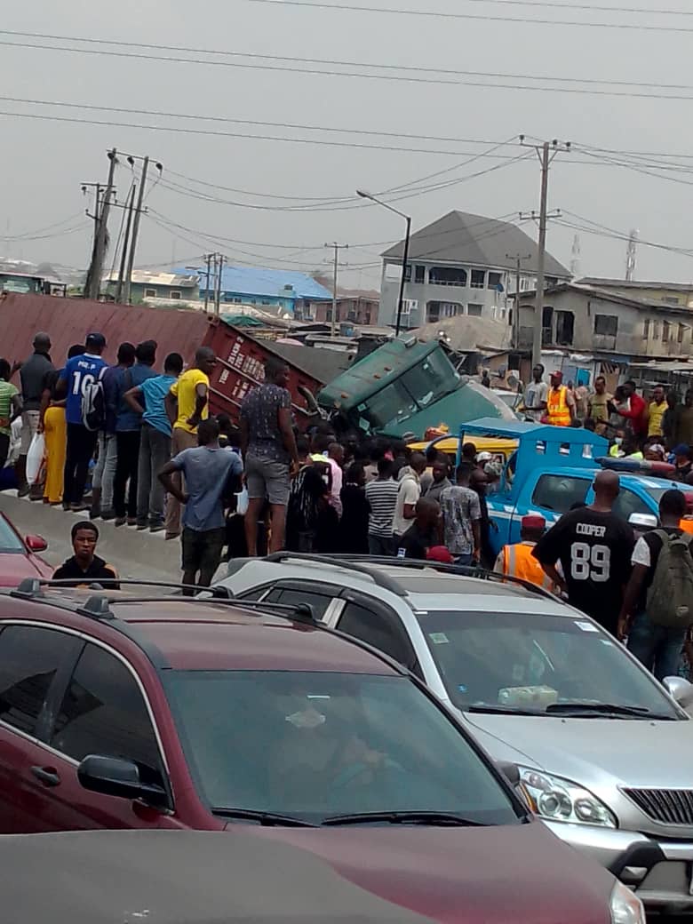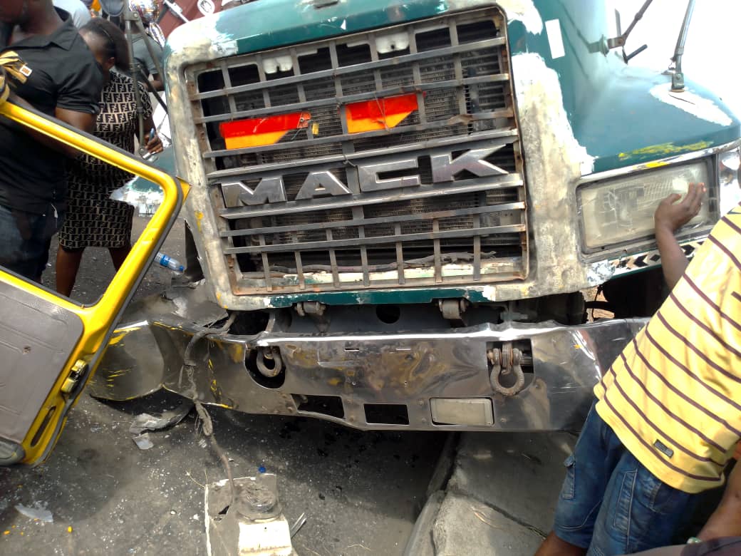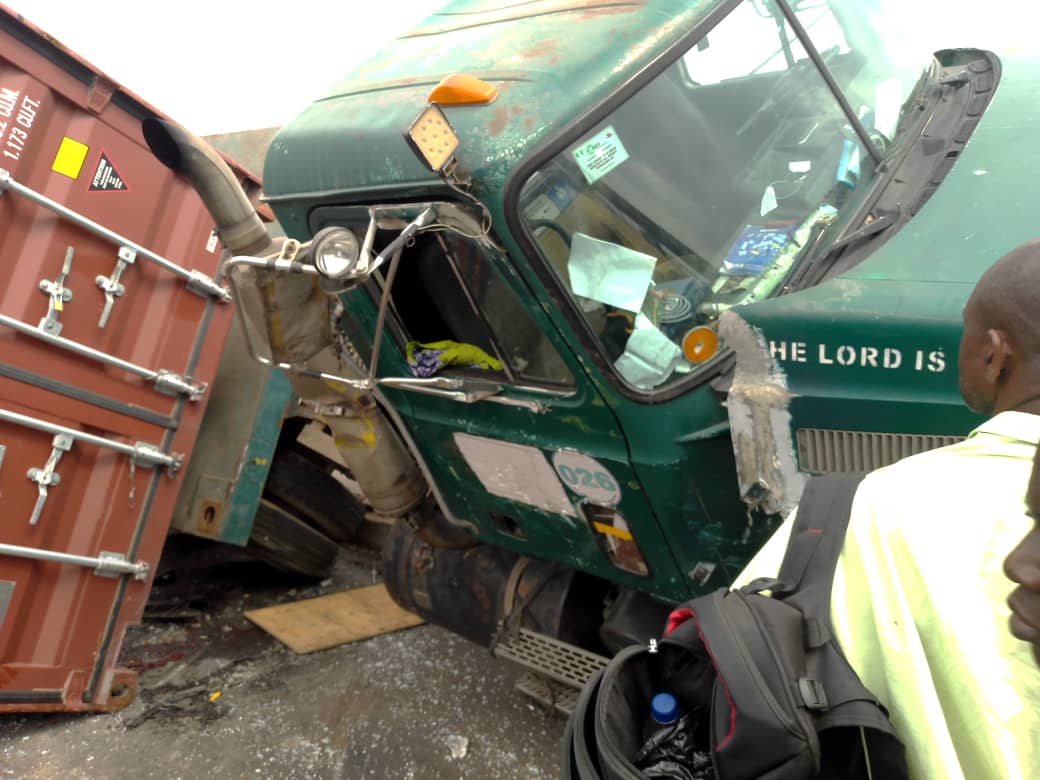 Operatives of the Lagos State Traffic Management Authority, (LASTMA), have rescued passengers inside a commercial bus, which was involved in an accident with a truck carrying a 40feet container along Apapa-Oshodi Expressway by PM Filling Station, Cele inward Mile 2 area of Lagos.