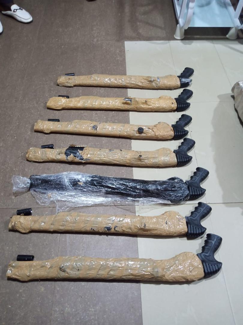 Police operatives from the Anambra State Command Police earlier today at about 11:30am, intercepted a gang member of a notorious gun-running syndicate in Onitsha and recovered seven brand new Jojef magnum pump action guns concealed in a bag.