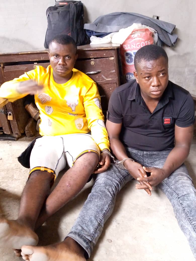 The two suspects arrested were brothers of the same parents namely Kelechi Okonne and his brother, Ibe Okonne. They were tracked and arrested at Alaba Rago Market in Ojo Local Government area of Lagos. Some of the items stolen during the operation including phones were recovered as exhibits.