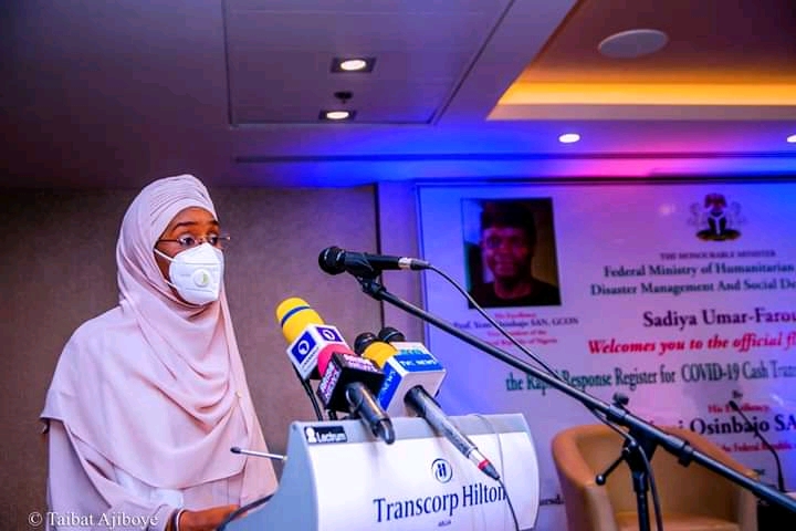 Vice President Prof Yemi Osinbajo SAN GCON has commended the Minister of Humanitarian Affairs, Disaster Management and Social Development Sadiya Umar Farouq for her innovation in upgrading the Rapid Response Register (RRR) for the Covid-19 Cash Transfer Project.