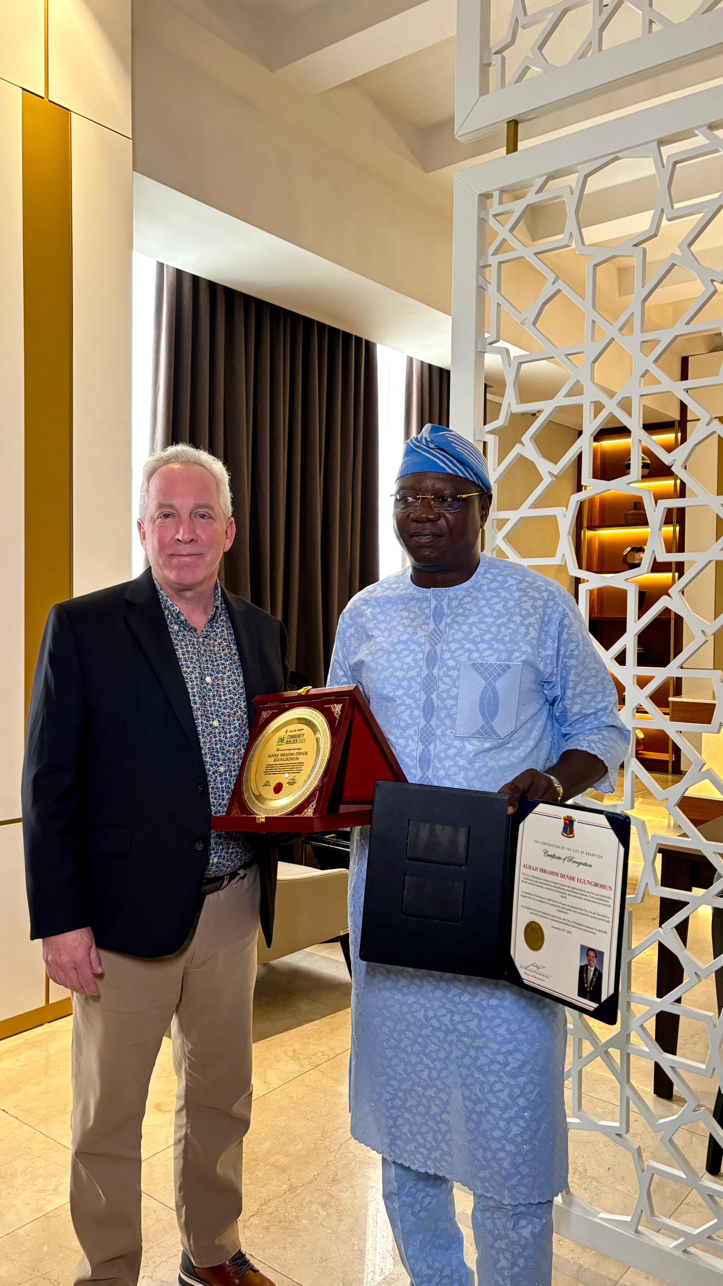 In a momentous ceremony held at the highbrow Radisson Blu Hotel in GRA, Ikeja, High Chief Ibrahim Dende Egungbohun, widely recognized as IBD Dende, received an illustrious Award of Excellence presented by the City of Brampton, Canada.