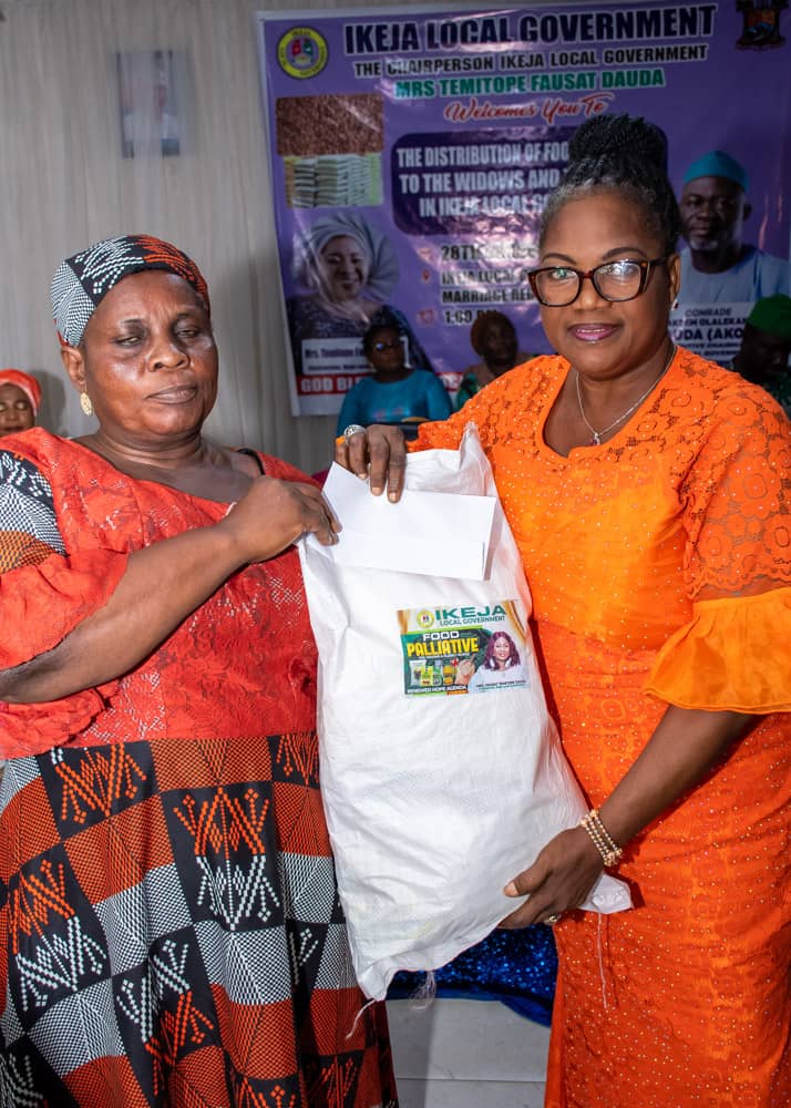 The intervention, which took place at the Ikeja Local Government Marriage Registry Hall, was organized under the leadership of the Chairperson, Ikeja Local Government, Mrs. Temitope Fausat Dauda, as part of ongoing efforts to cushion the effects of economic hardship on vulnerable groups within the community.