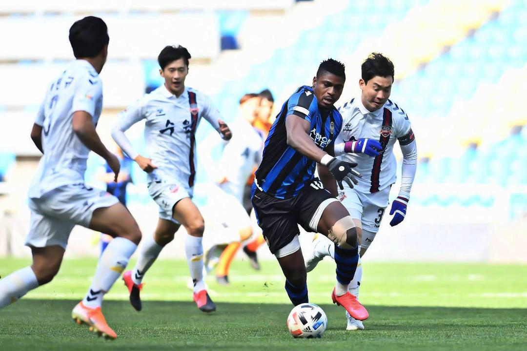 The 25 years old top striker renowned for his free scoring attribute in international club football, has stated that, he is more than determined to find the back of the net for his club when the suspended K-League resumes, in his attempt to help his club, Incheon FC, win the Korean top flight league title.