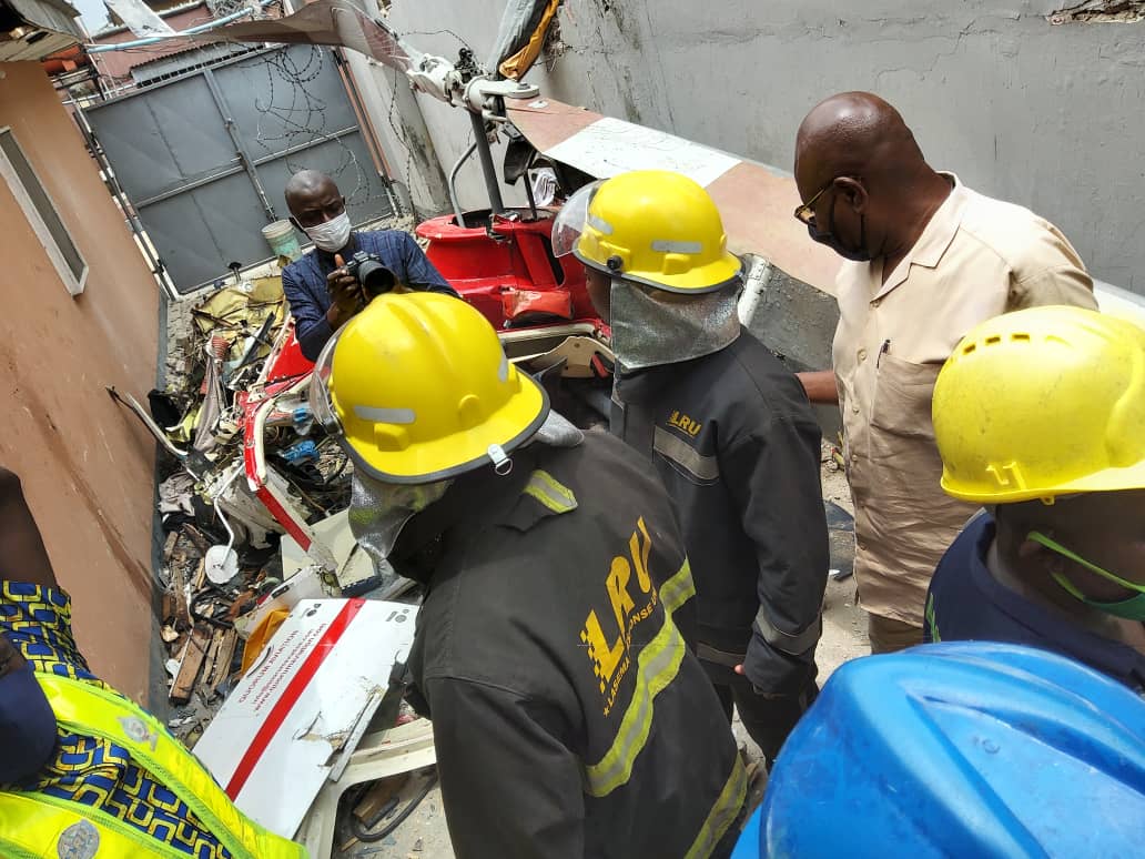 The helicopter crash, which occurred at No. 16, Salvation Road in Opebi, Lagos, reportedly claimed two lives leaving one person injured.