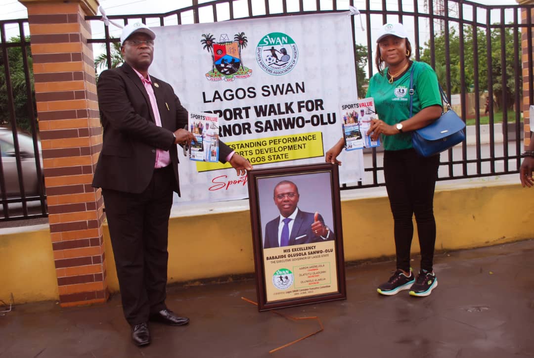 The event with the theme “Support Walk for Governor Babajide Olusola Sanwo-Olu”,  was organised by the Caretaker Executive Committee of Lagos SWAN, to commend Governor Sanwo-Olu’s administration for his outstanding support and commendable commitment toward sports growth and youth advancement in Lagos State.