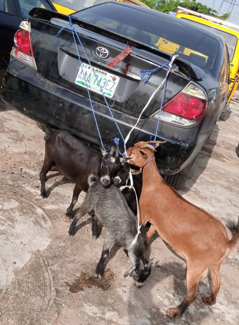 P.M.EXPRESS reports as was disclosed by the Head of Public Affairs Unit, Lagos Task Force, Mr. Adebayo Taofiq.He said that the Enforcement Team led by DSP Anthony Abutu recovered the goats while on security monitoring operation in the Ikorodu axis. They reportedly intercepted a Blue Toyota Camry with registration number AAA 743 EZ while driving on the BRT corridor. He added that the driver and his colleague immediately abandoned the vehicle on the road and ran away.