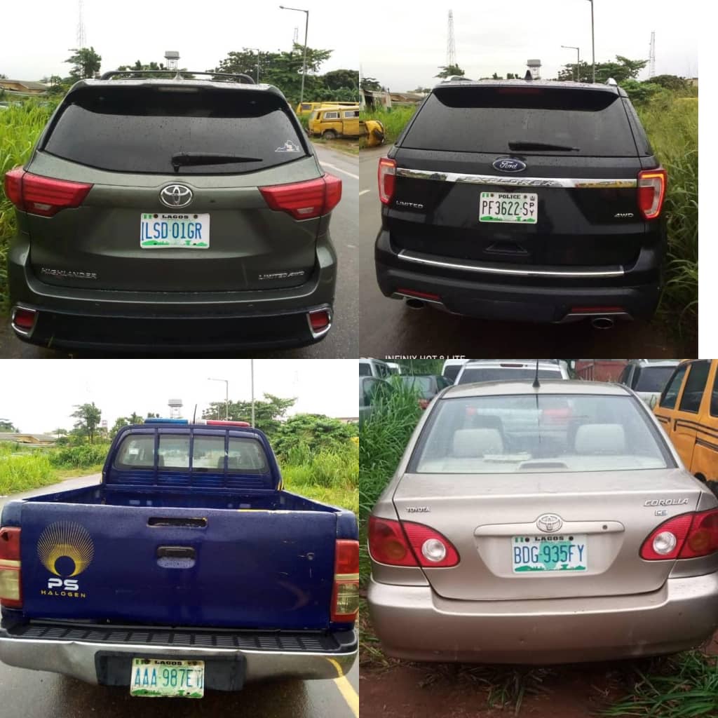 The make and registration of the 10 impounded vehicles are: Sinotruck (LND 26 XW), Toyota Corolla (BDG 935 FY), A – Zebra (AGL 18 AH), Ford Limited (PF 3622 SPY), Toyota Matrix (KSF 15 DS), Highlander (LSD 01 GR), Toyota Hiace (GGE 506 XZ), Mini Bus (BDG 484 TC), Toyota Hilux (KJA 392 XT) and Toyota Hilux (AAA 987 ET).