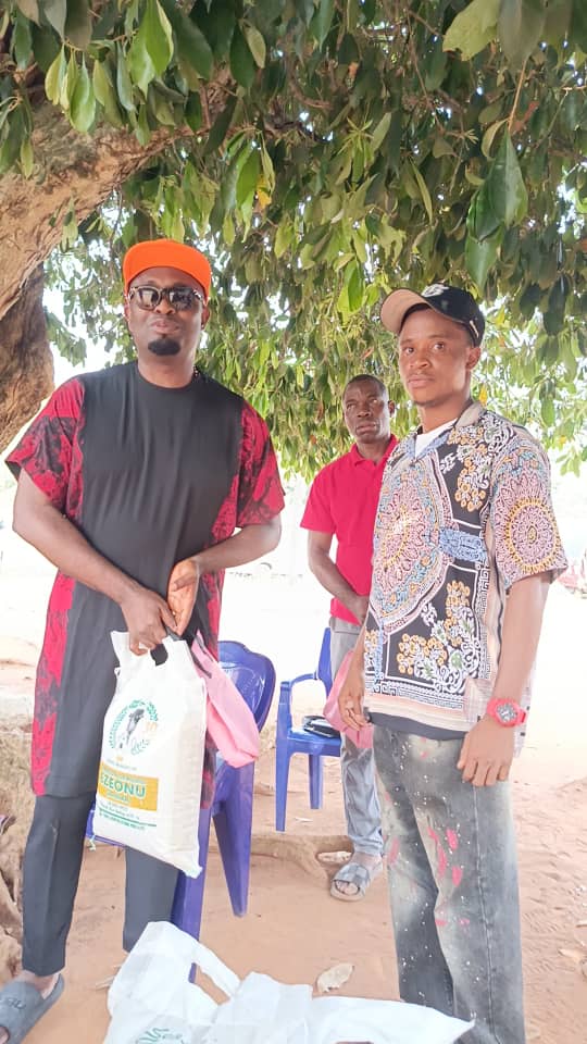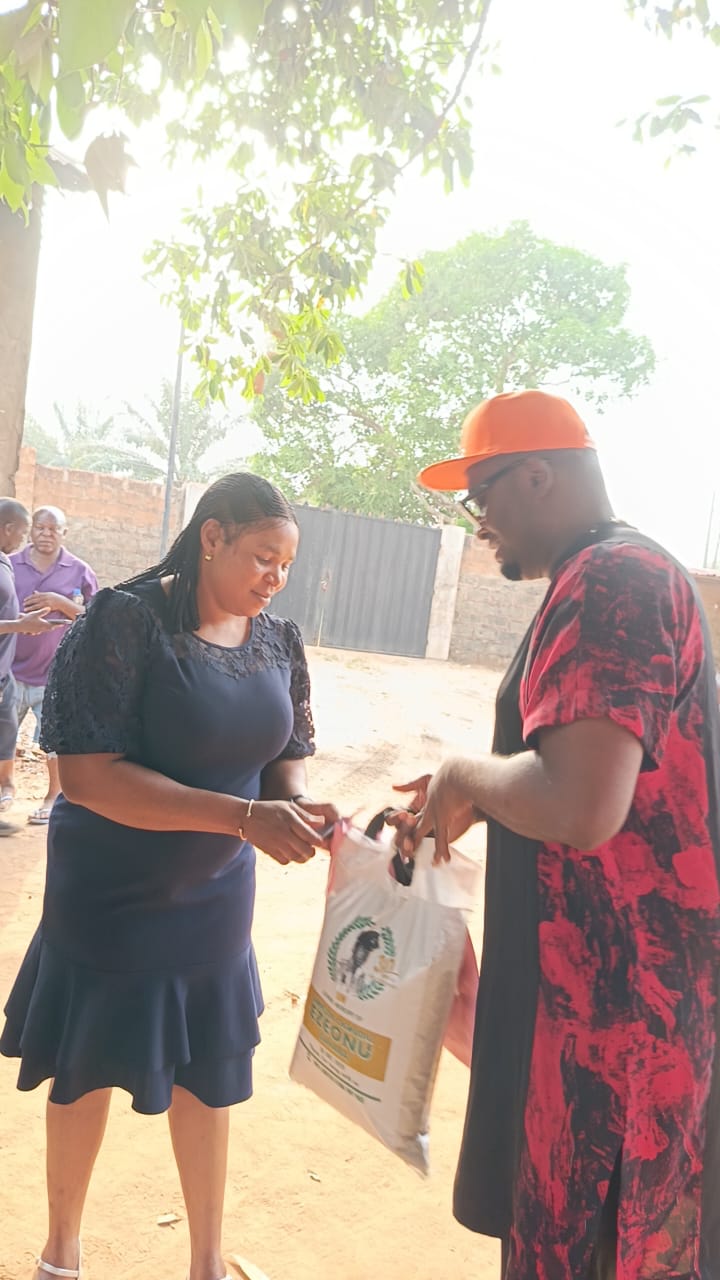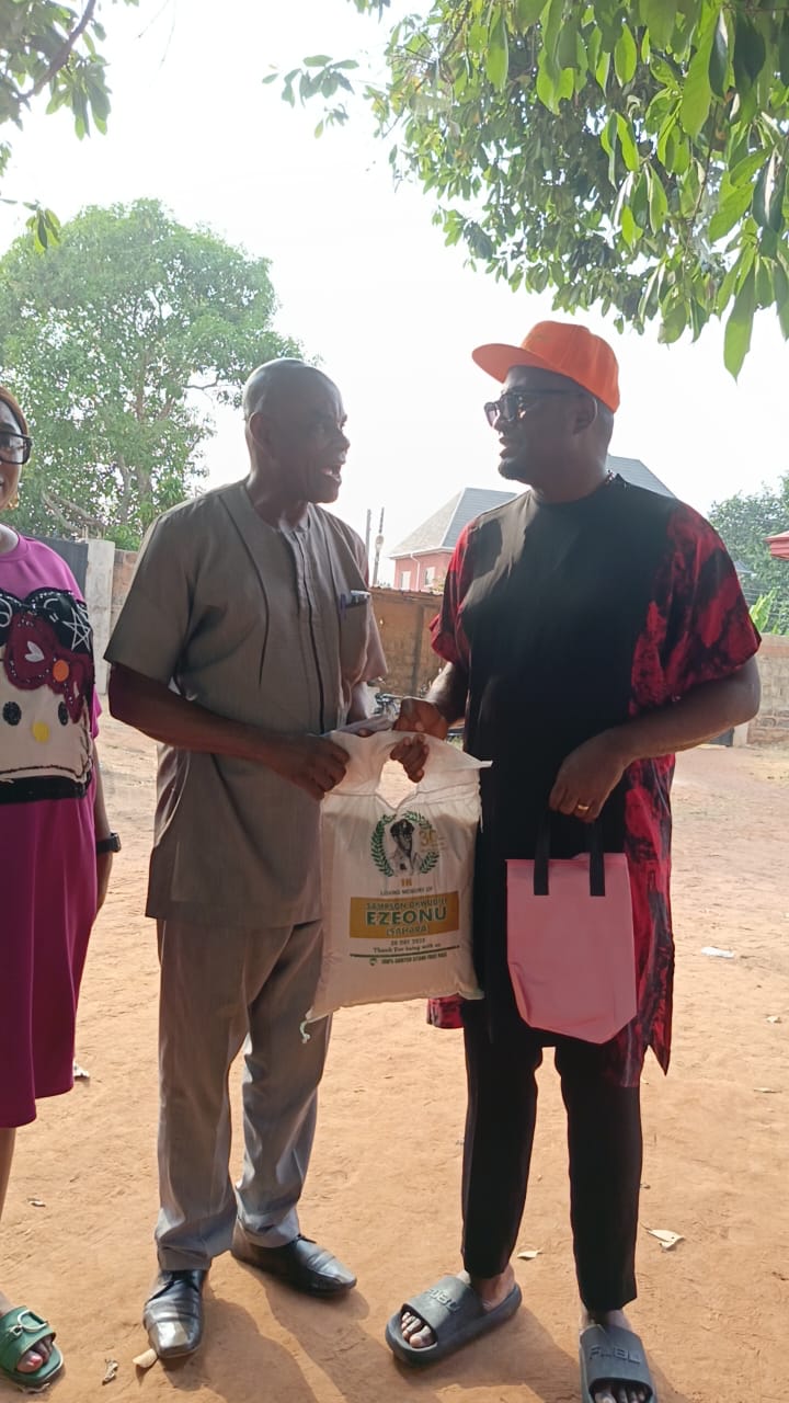 “We’re here to encourage everyone of you with bags of rice and other gift items,” he said.