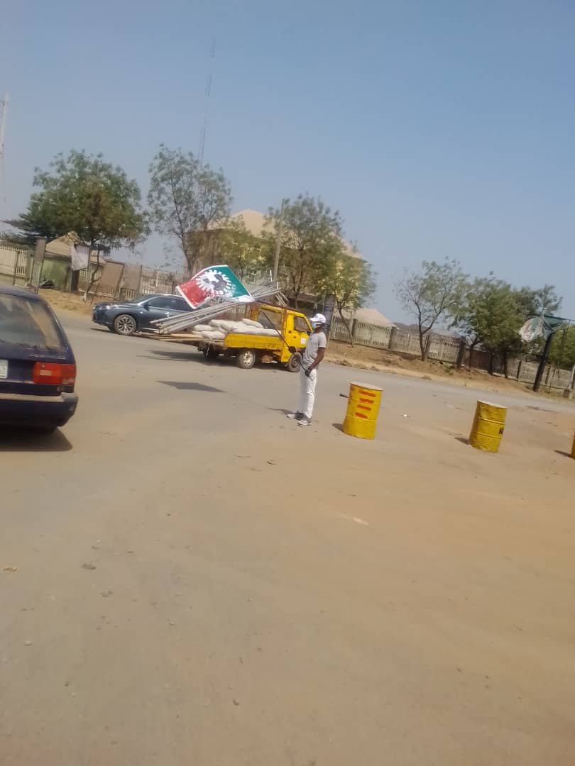 A dark young man of average height, was on Saturday, 10th December 2022, spotted standing still with the flag of the Labour Party at a cynosural part of the popular Eze-Uzu Junction (also known as Agu Awka Junction) in Awka, Anambra State capital.