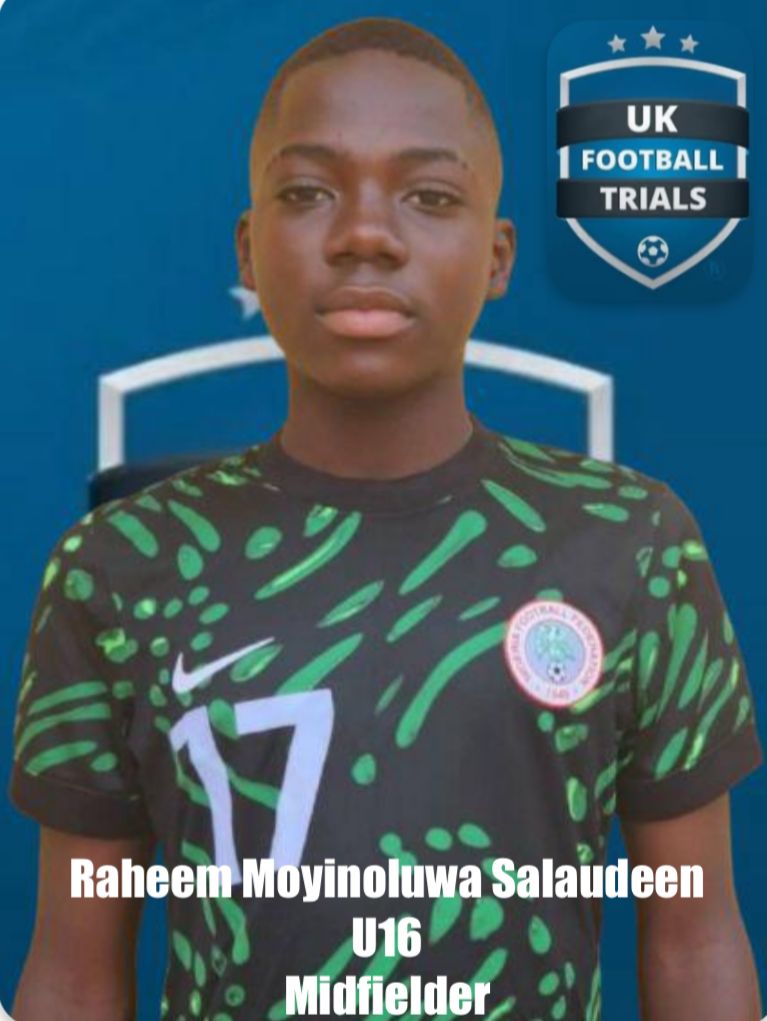 Nigeria U15 International, Raheem Moyinoluwa Salaudeen, who has trained with Lambeth Tigers, Club LDN, Ondagrass XI, Whitstable Town & Brooke House College, is set to join UK Football trials on 23rd December, 2025.