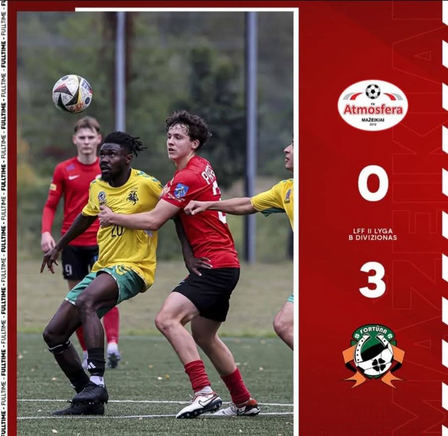 Lithuanian side, VJFM FORTUNA, continued their impressive run with a convincing 3–0 away victory against FK ATMOSFERA B.
