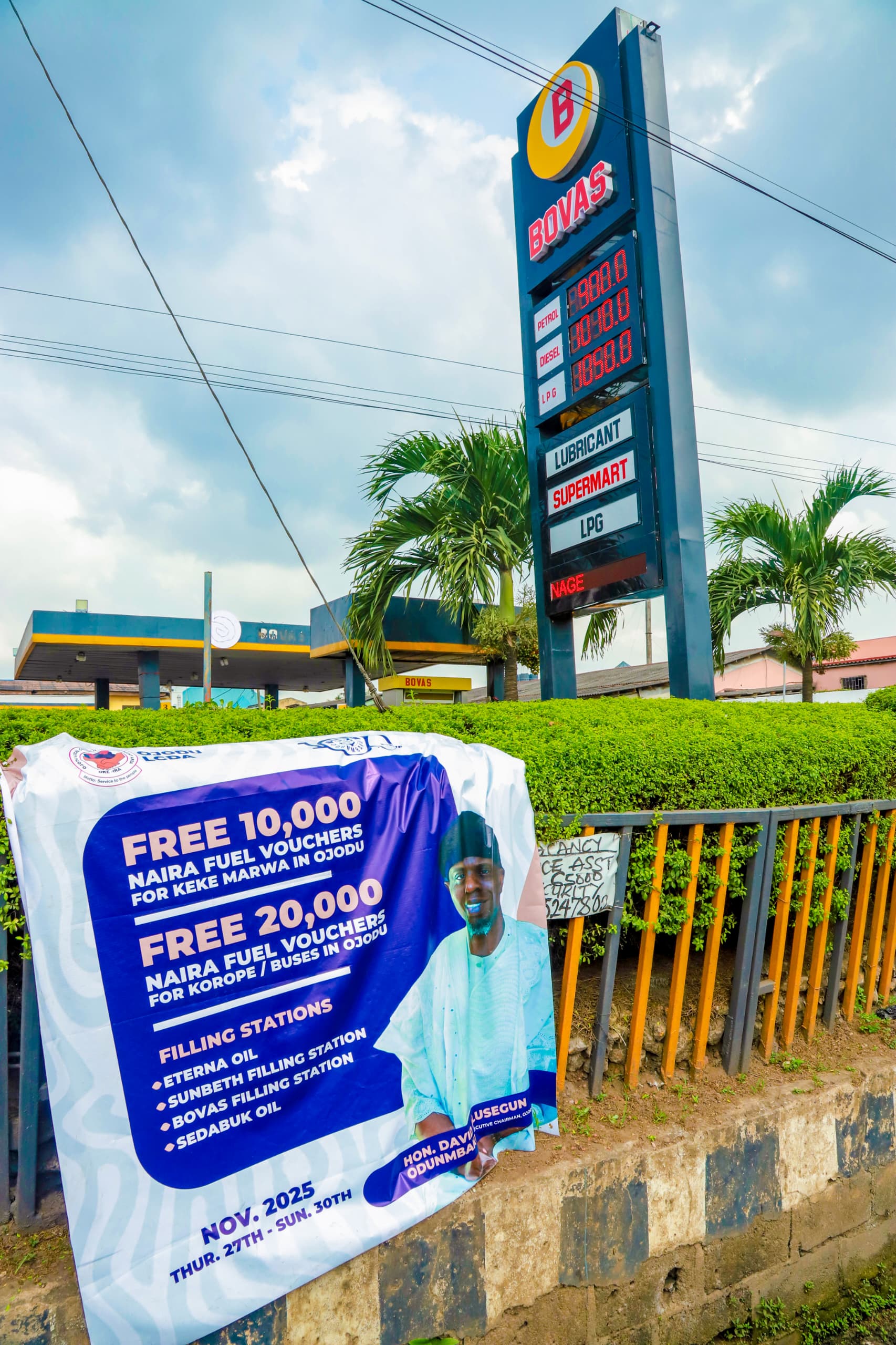 Vouchers were redeemed at Eterna Oil Station, Sunbeth Fuel Station, Bovas Fuel Station and NNPC Omole Station in Ojodu LCDA.