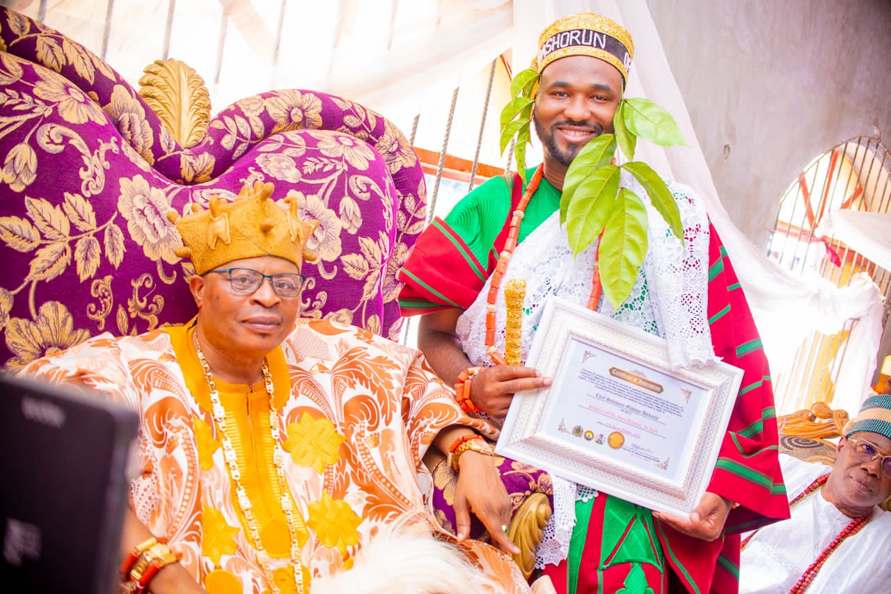 The Asoya presented him with intricate neck and hand beads, a staff, and an official certificate, affirming his new position as Bashorun Ile-Isoya.
