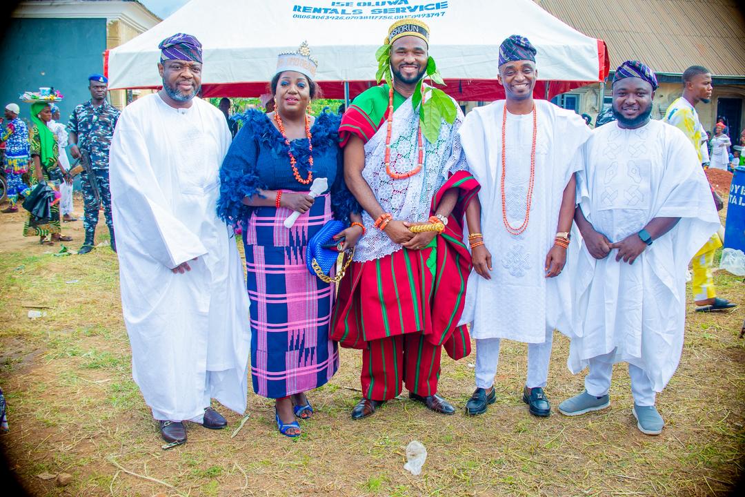 Dressed in vibrant, traditional Aso-Oke attire adorned in wine and green hues, Oladapo was accompanied by his beloved wife, Mrs Adunola Sofowora; mother Mrs Olufunke Sofowora; Aare Bashir Olawale Fakorede and Princess Toyin Kolade Iyalaje Oodua as they participated in rituals that underscored the rich cultural heritage of the Yoruba people.