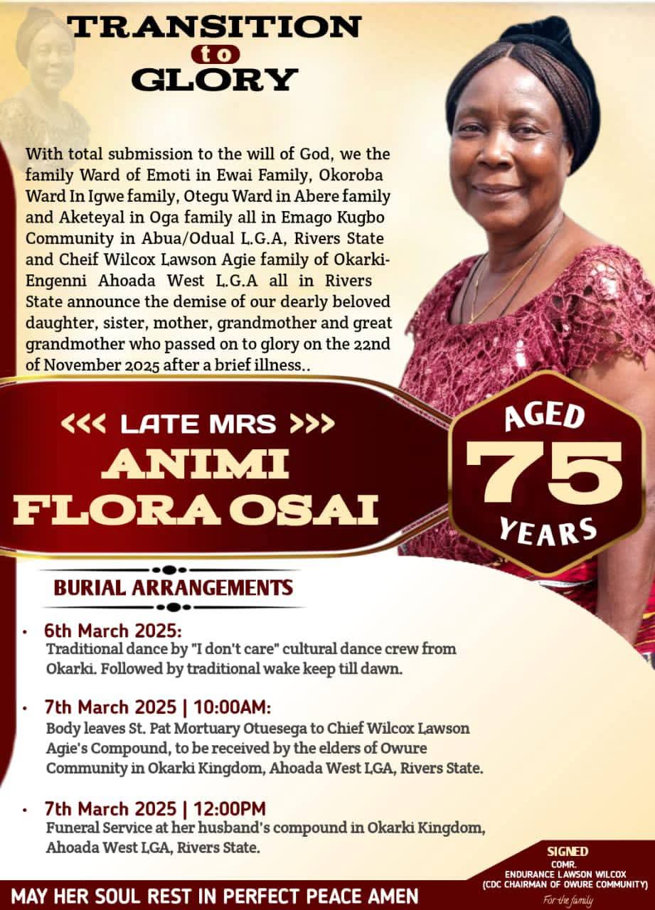The statement, addressed to the family in Ahoada West, noted that the demise of Mrs. Egenni has created a vacuum that would not be easily filled. The ONC leadership acknowledged the grief and emotional burden that accompanies the loss of a beloved mother and prayed for divine strength for the family during this difficult period.