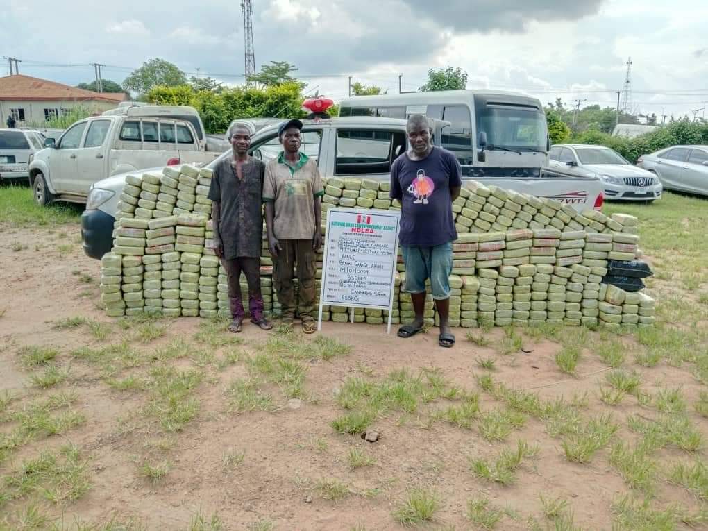 In Jigawa state, the trio of Tukur Yahaya, 55; Idris Haruna, 28; and Tanimu Umar, 29, were nabbed with 90 blocks of cannabis weighing 116.8kg at Roni junction, Kazaure LGA, on Friday 19th July while on their way to supply the illicit drugs to their customers in Kazaure, Yankwashi and Katsina state.