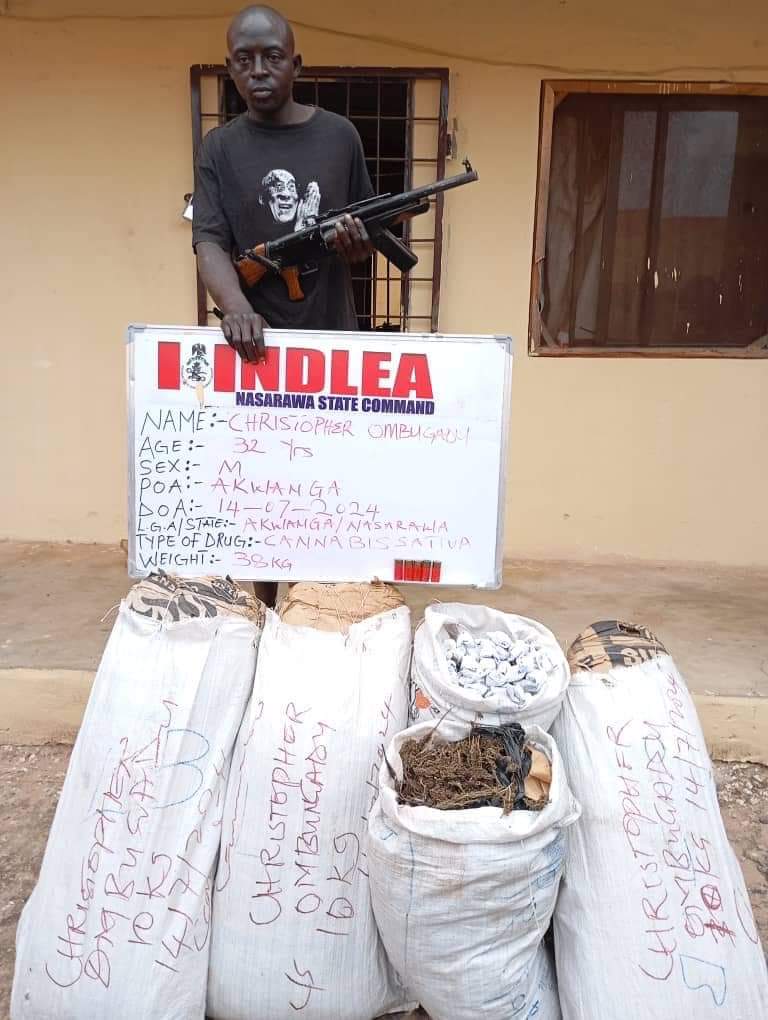 Acting on credible intelligence, a team of NDLEA operatives backed by soldiers raided a mechanic workshop opposite Benin garage, Akure, Ondo state where they recovered a white Toyota Hilux Van with registration number EE 328 EKY loaded with 652 parcels of cannabis weighing 685kg. In Nasarawa state, 38kg of the same psychoactive substance and a locally made AK-47 rifle were recovered from the home of a suspect, Christopher Ombugadu, 32, in Akwanga during a raid on Sunday 14th July.