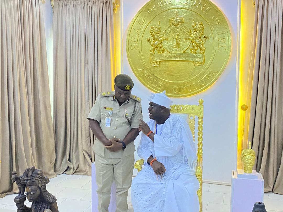Ooni Ogunwusi assured the Comptroller of his full support, stressing that the palace remains open to collaboration with security agencies for the peace, stability, and development of society.