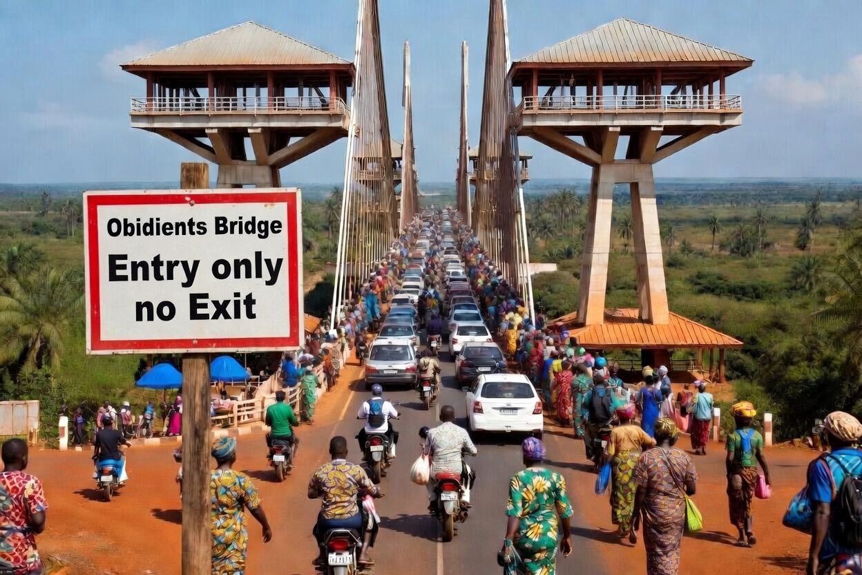 When people say Peter Obi is building bridges what comes to my mind is the image attached — a one way bridge that is welcoming to Entrants alone, no chance of exit is permitted. So, one can comfortably say that being an “obidient” means being stuck and held under the fear of an imminent mob attack any day you contemplate an exit.