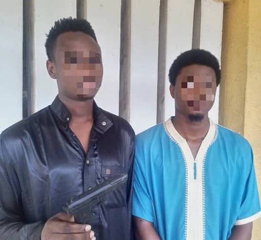 P.M.EXPRESS reports that the suspects Kyari Idris, 20, and Abubakar Salisu, 18, were arrested and discovered to be in possession of the toy pistol during a routine stop-and-search operation near the Agege Railway Police Station.