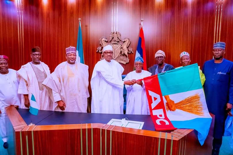 President Buhari Commends Oyetola For Tireless Service To The People, Presents Party Flag