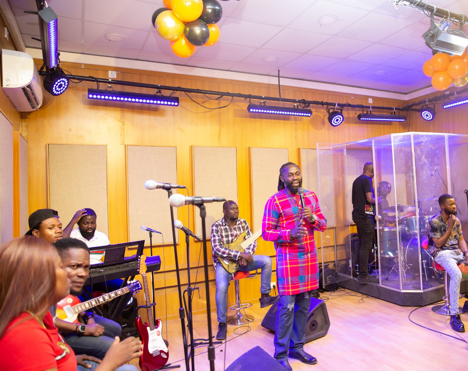 The facility tour was conducted by the Consultant, Mr. Jide Fowode who took the guests round the facilities which include Live Studio, Analog Studio, Digital Studio, Rehearsal Studio, Lightings, Multicamera Video Recording and Editing Suite, Lounge and Rooms, and Sound Equipment Rentals.