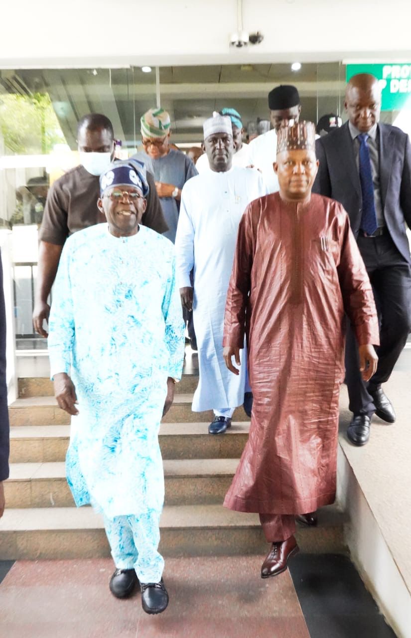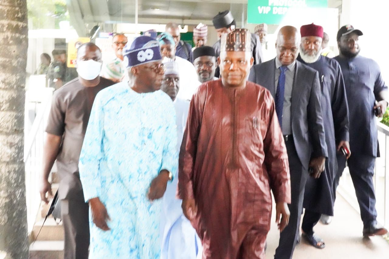 The Former Governor of Borno State, Senator Kashim Shettima, today received the All Progressives Congress Presidential Standard bearer, Asíwájú Bola Ahmed Tinubu, at the Abuja Airport.